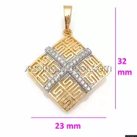 Кулон Ромб, с греческим рисунком и камнями, позолота+родий