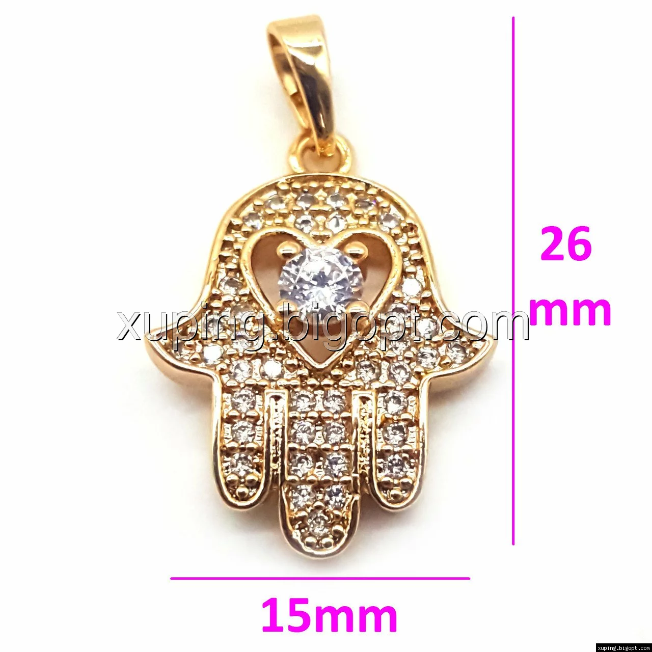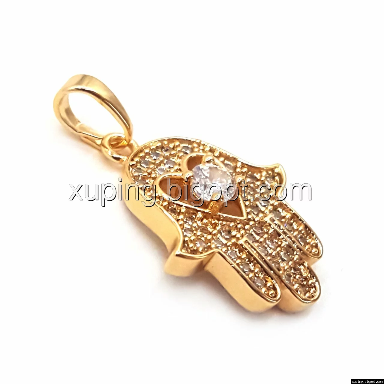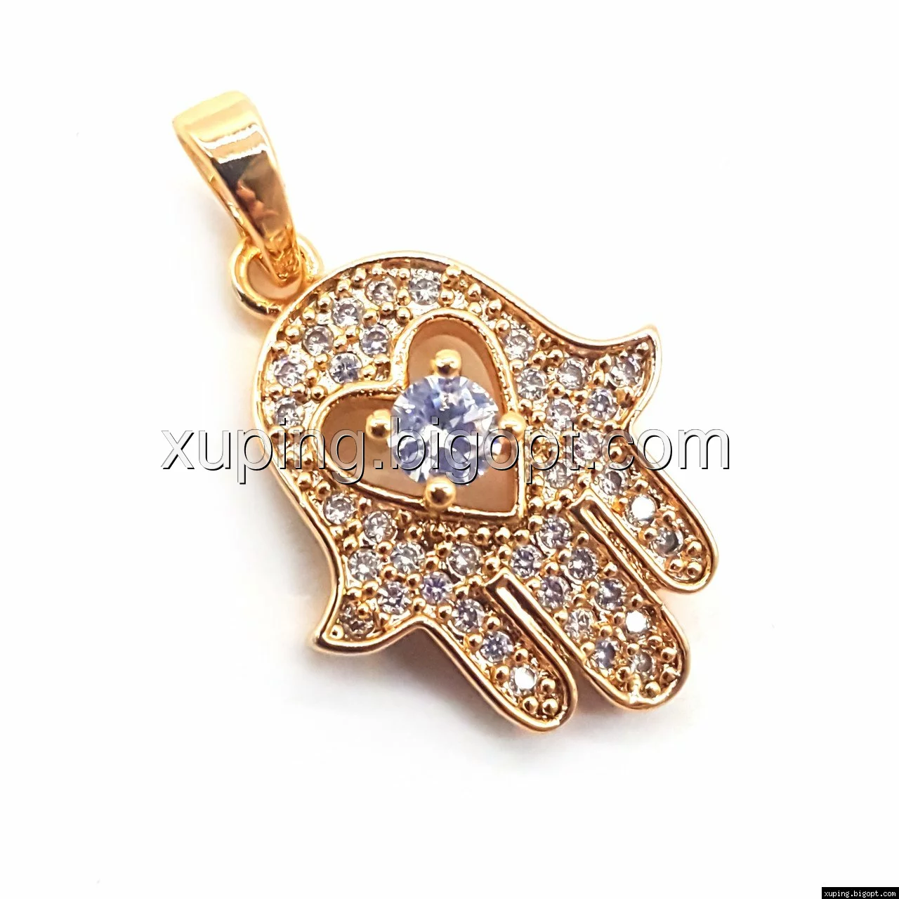 Кулон рука Фатимы, с россыпью циркония, позолота