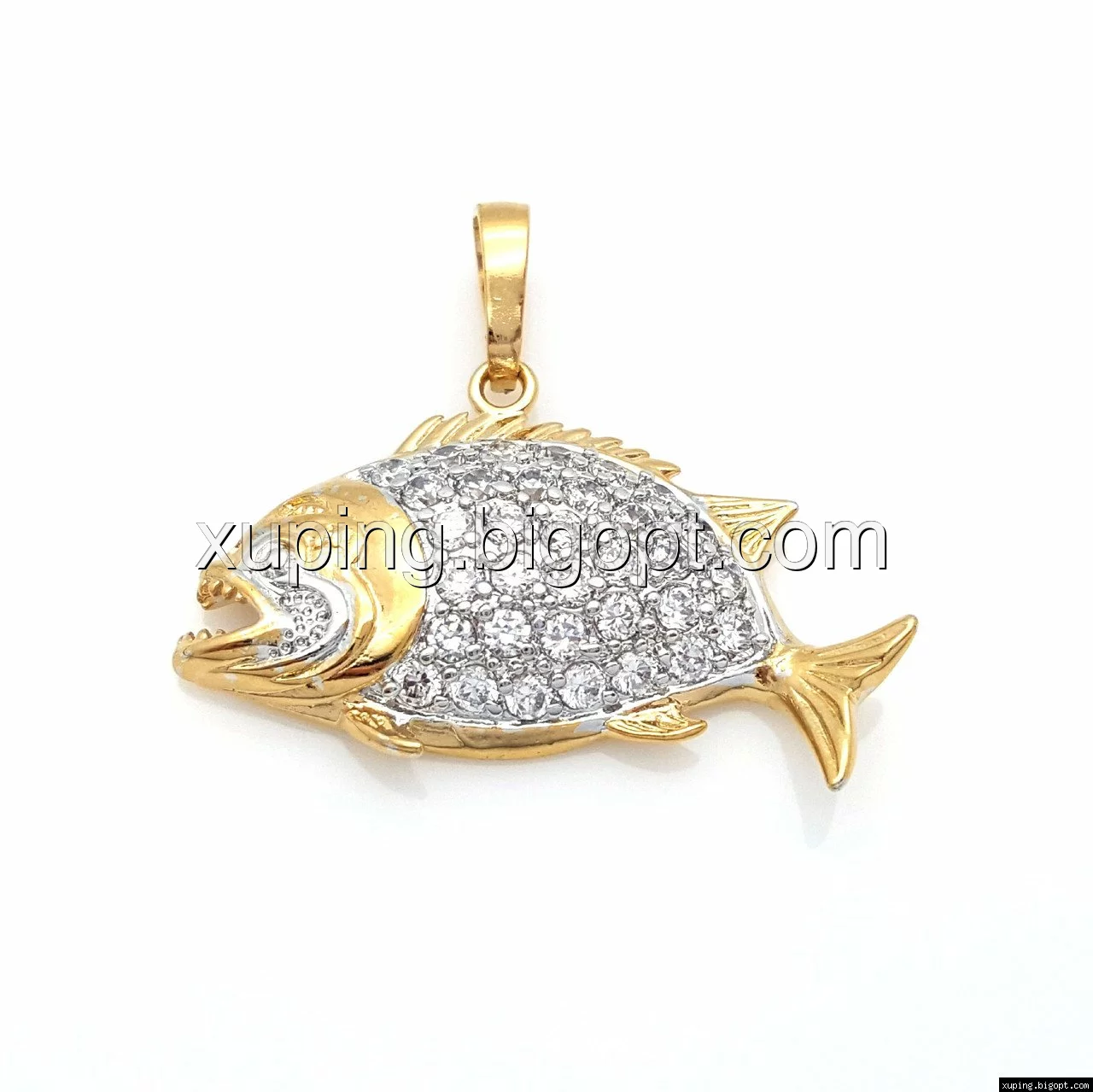Кулон Риба Хижак, з розсипом каміння, позолота+родій