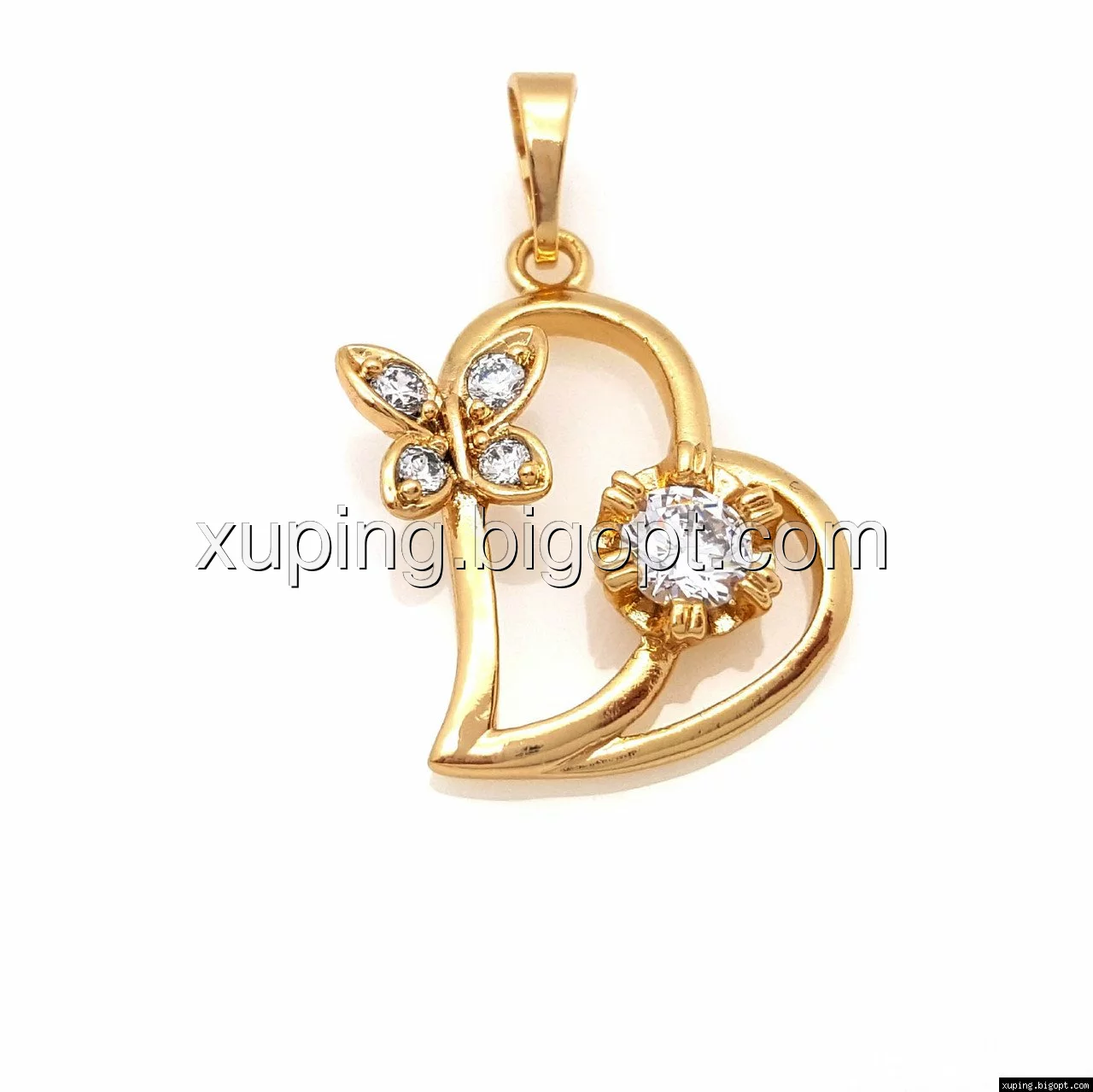 Кулон Сердце с Бабочкой и Цветком, вставка цирконий, позолота