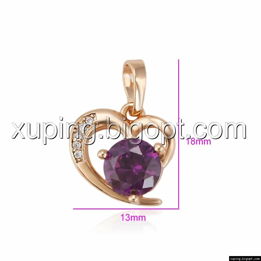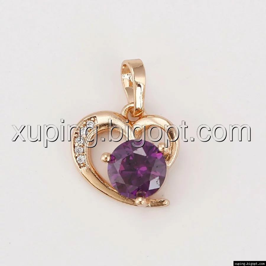 Кулон Сердце, с фиолетовым цирконием, позолота