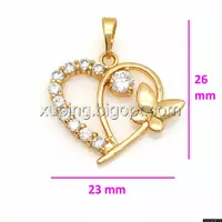 Кулон Сердце с мотыльком, россыпь циркония, позолота