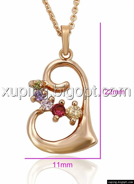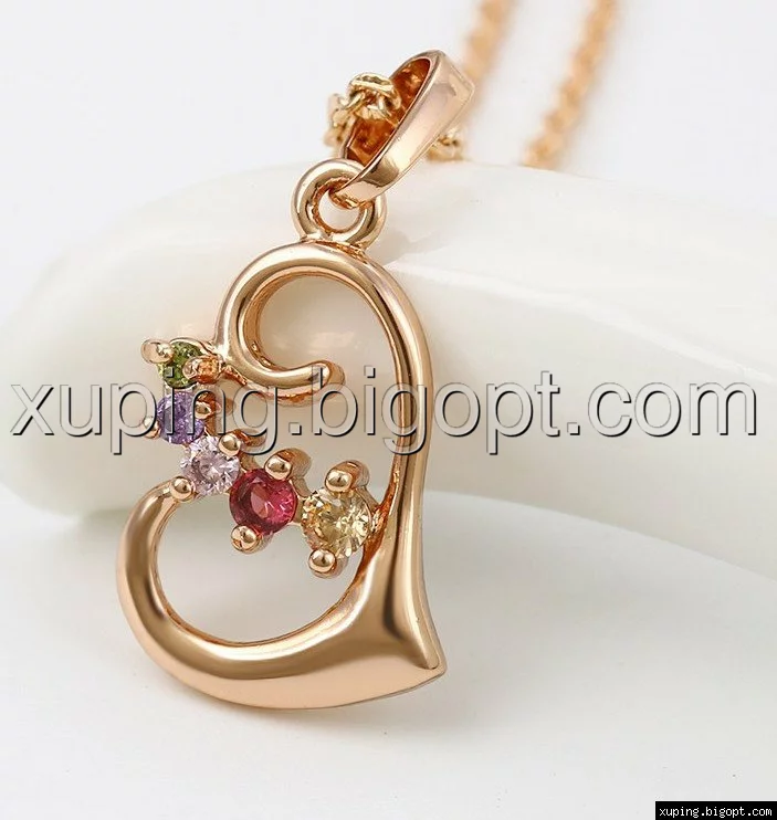Кулон Сердце, с разноцветным цирконием,позолота