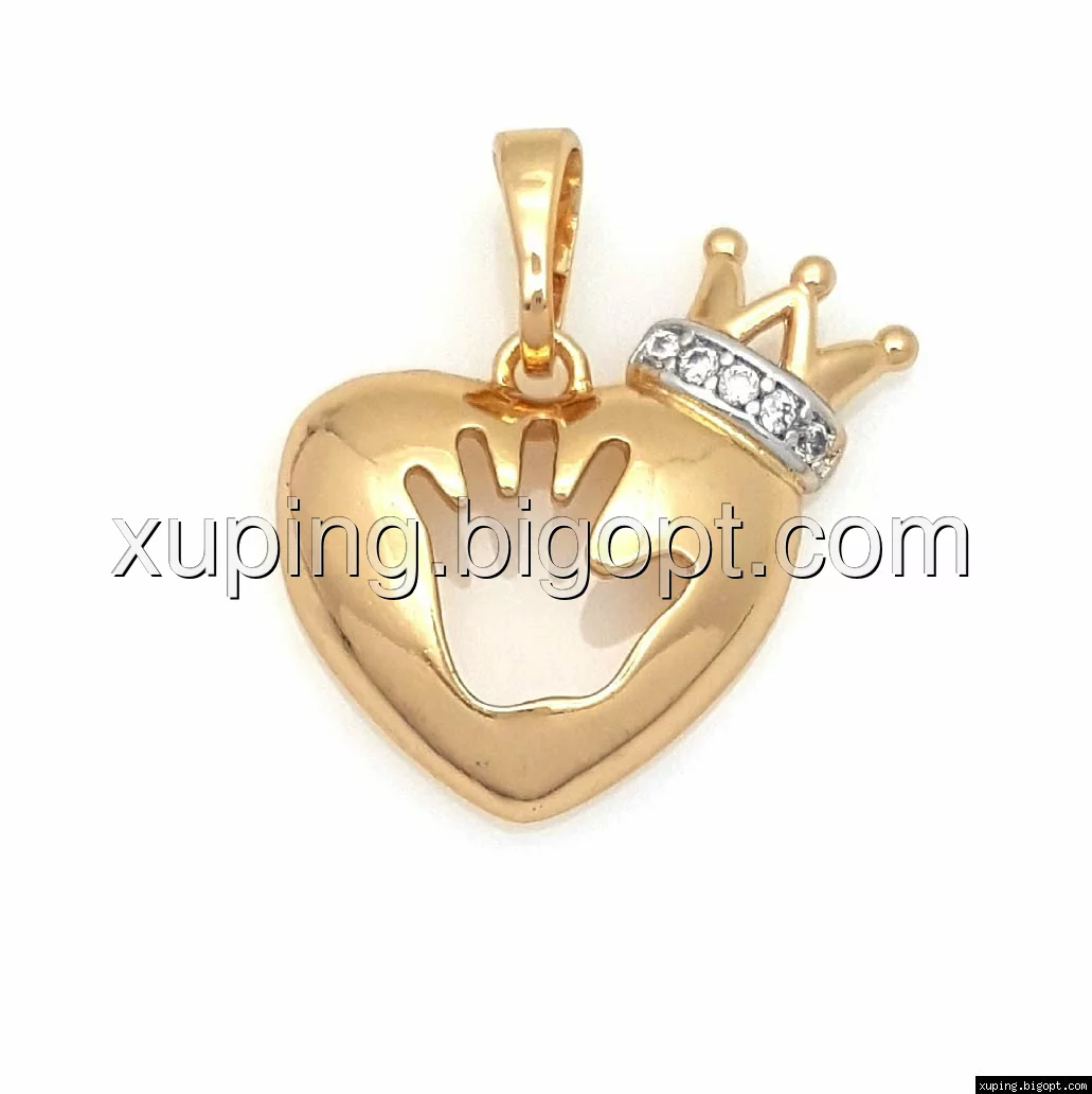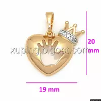 Кулон Сердце с Рукой Младенца, вставка цирконий, позолота+родий Xuping