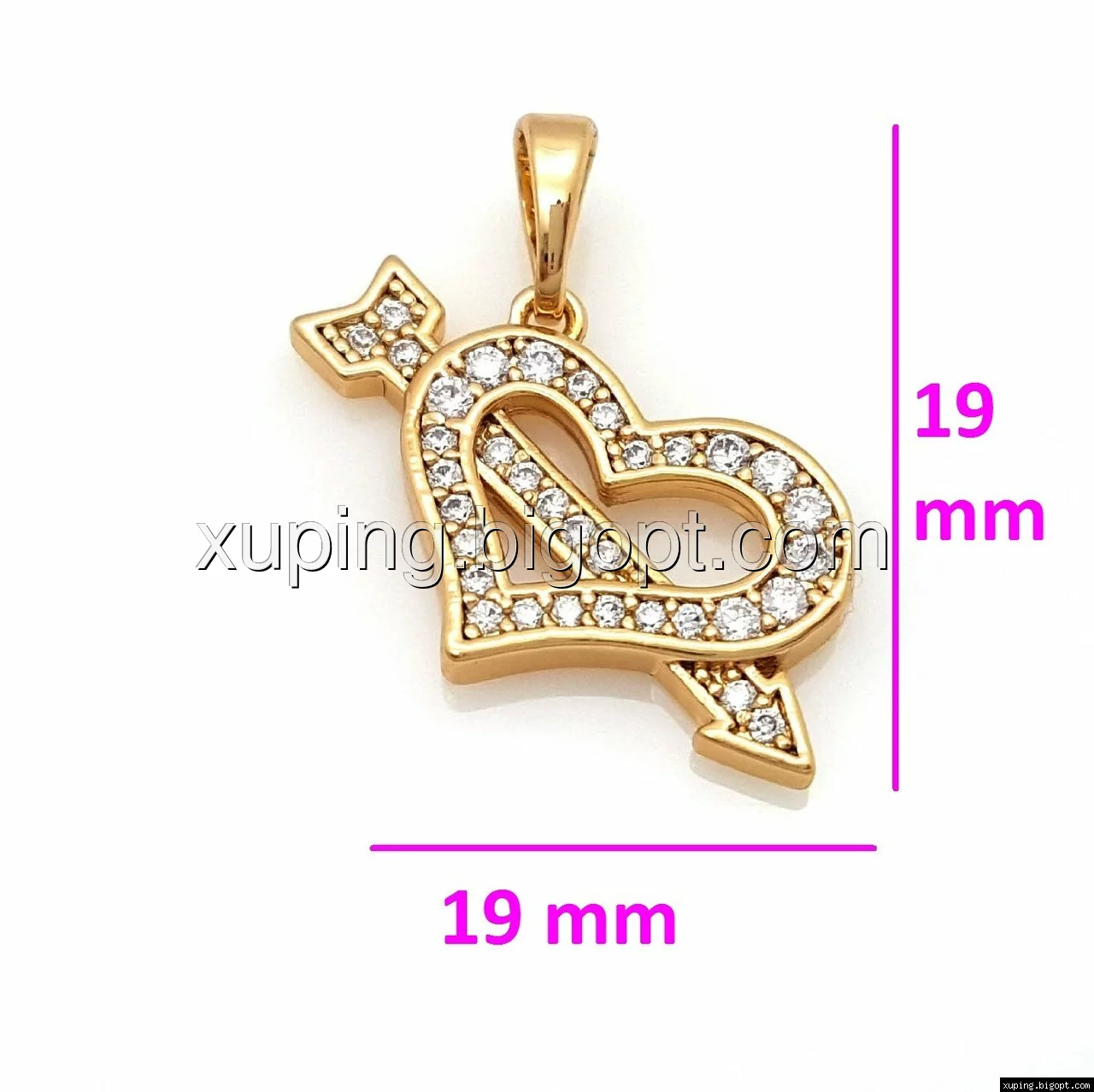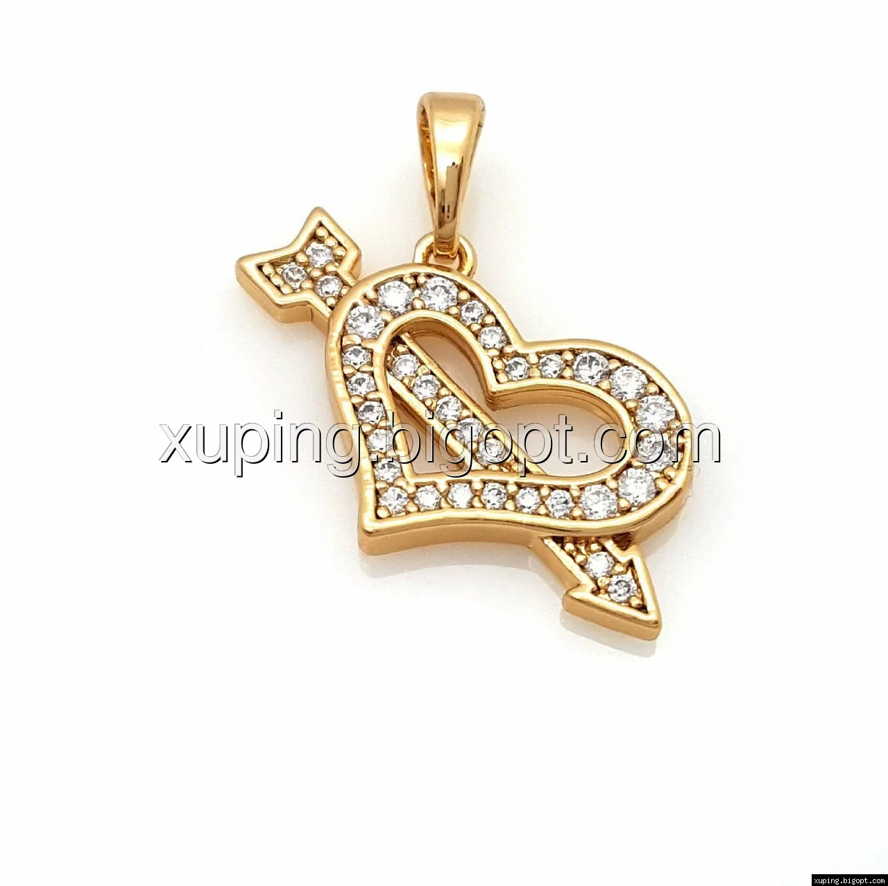 Кулон Серце зі Стрілою, в каменях, позолота Xuping