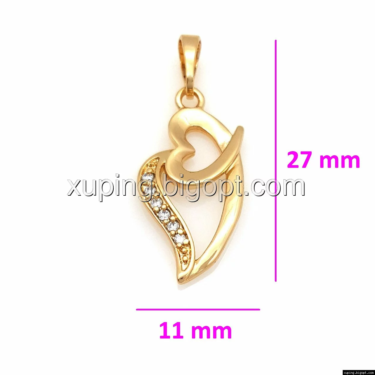 Кулон Сердце со вставками циркония, позолота Xuping