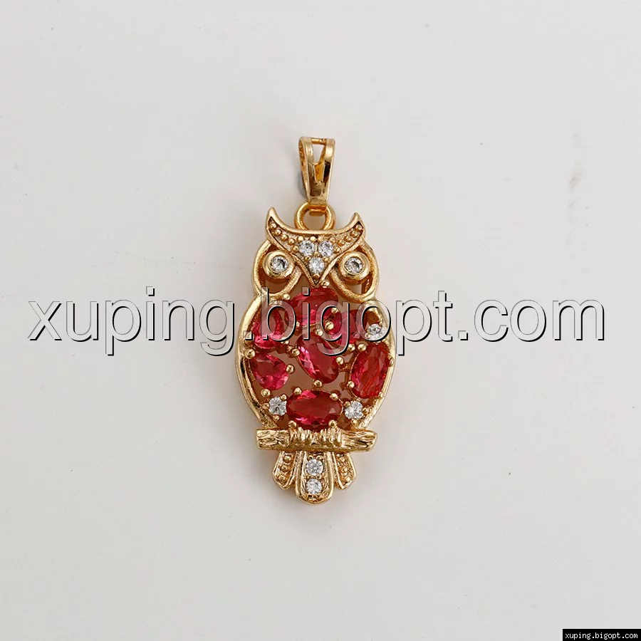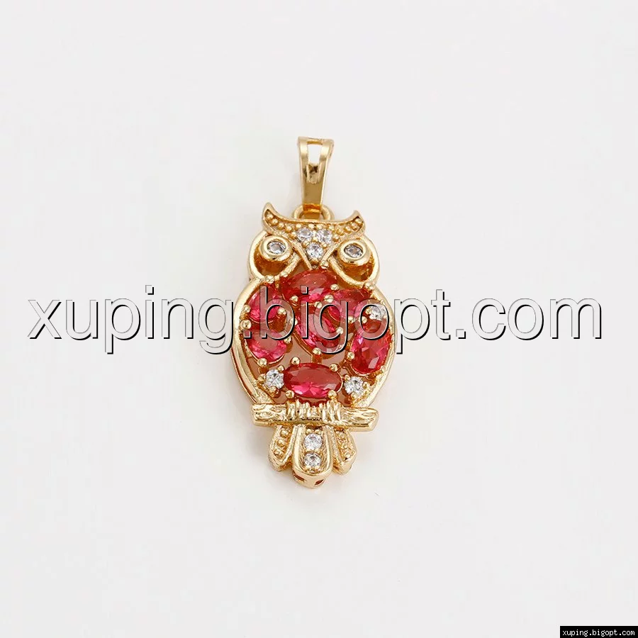 Кулон Сова, с красным цирконием, позолота
