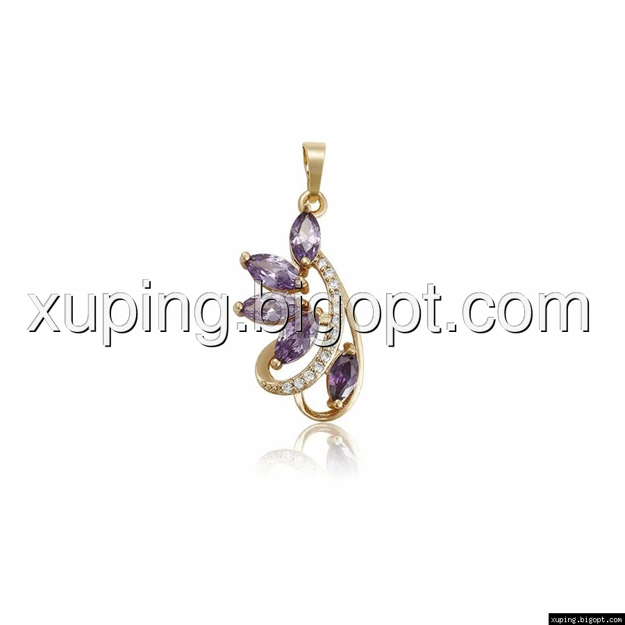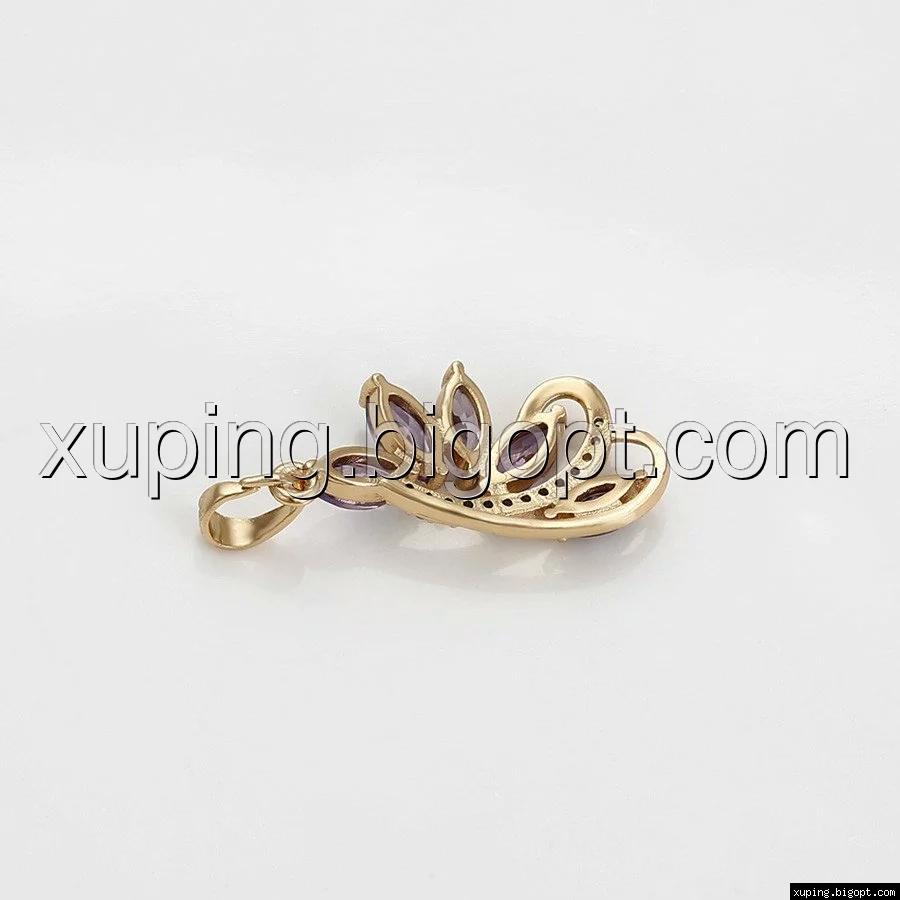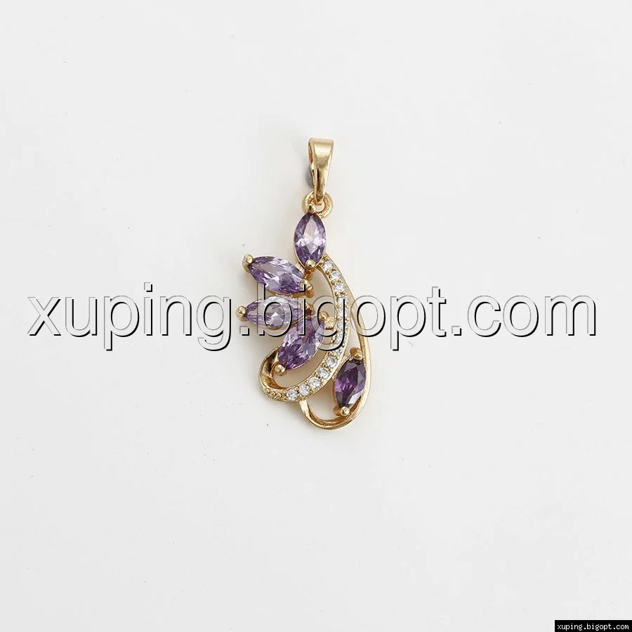 Кулон Веточка, с фиолетовым цирконием, позолота