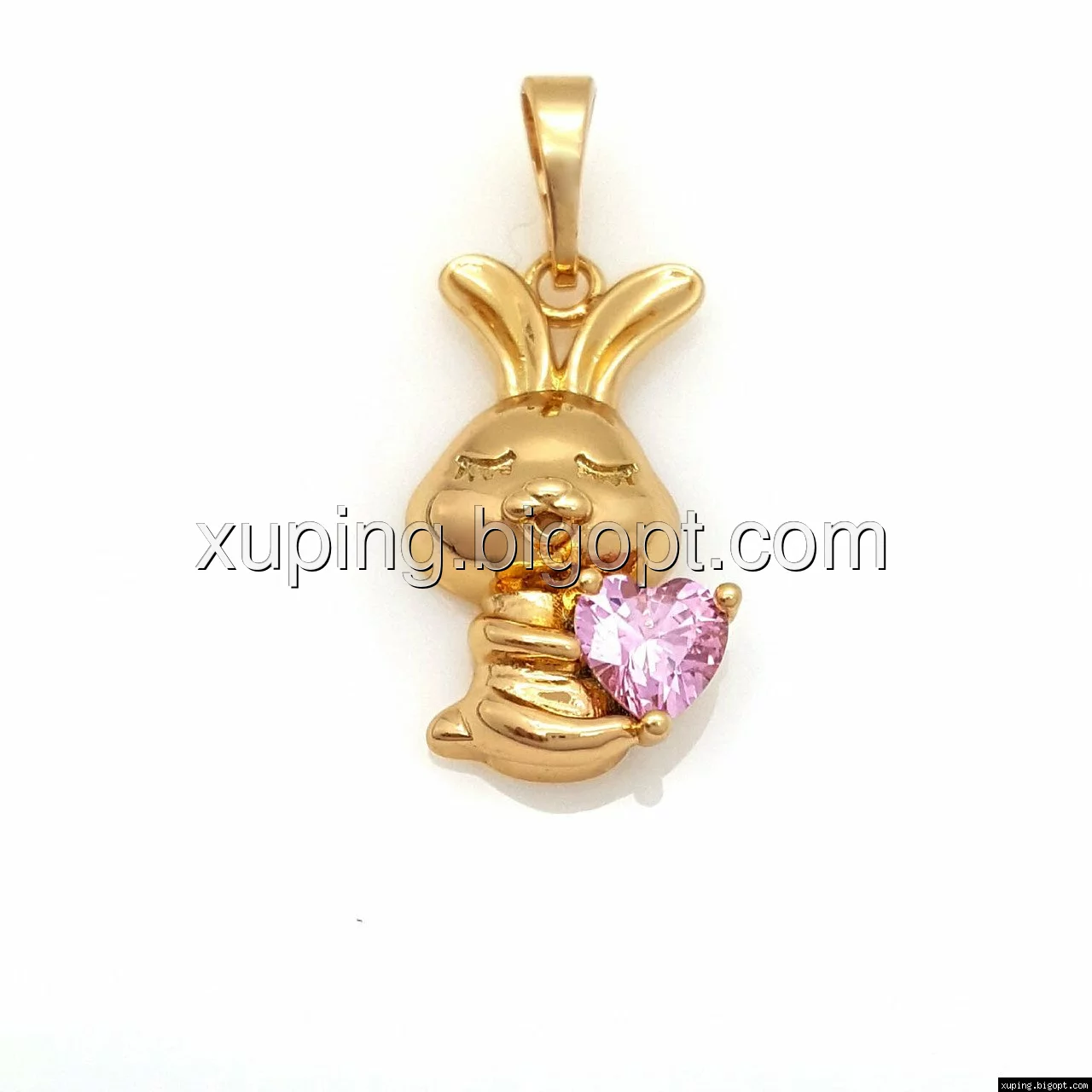 Кулон Зайченок с Сердечком, вставка розовый цирконий, позолота