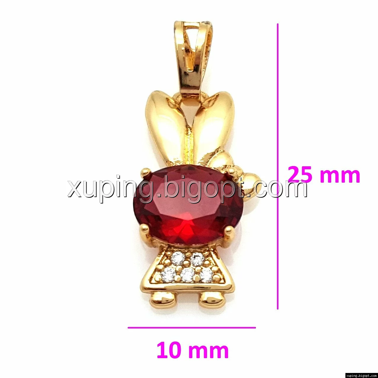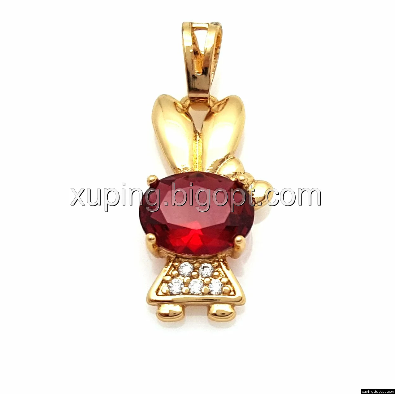 Кулон Зайка, с красным цирконием, позолота Xuping