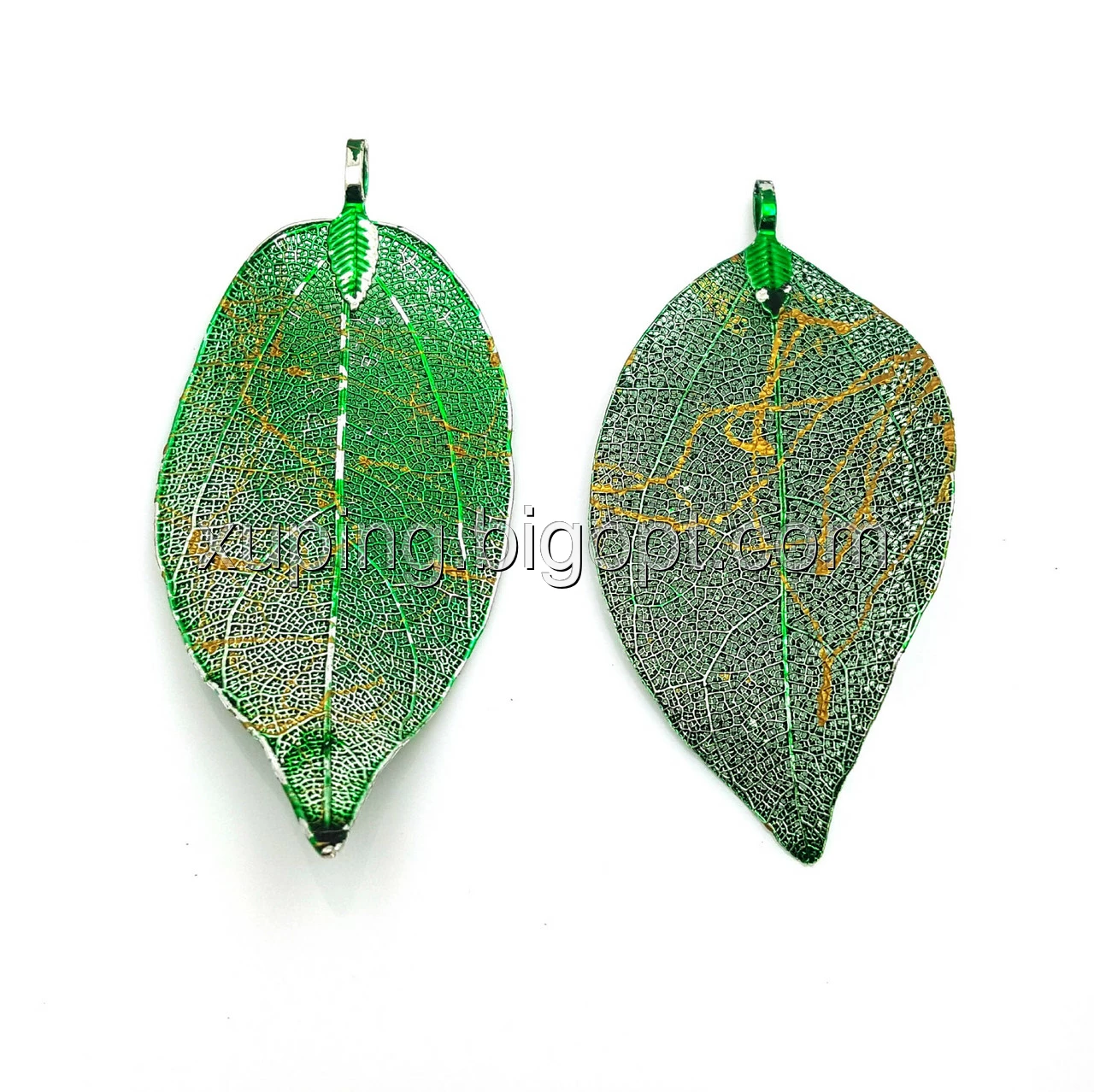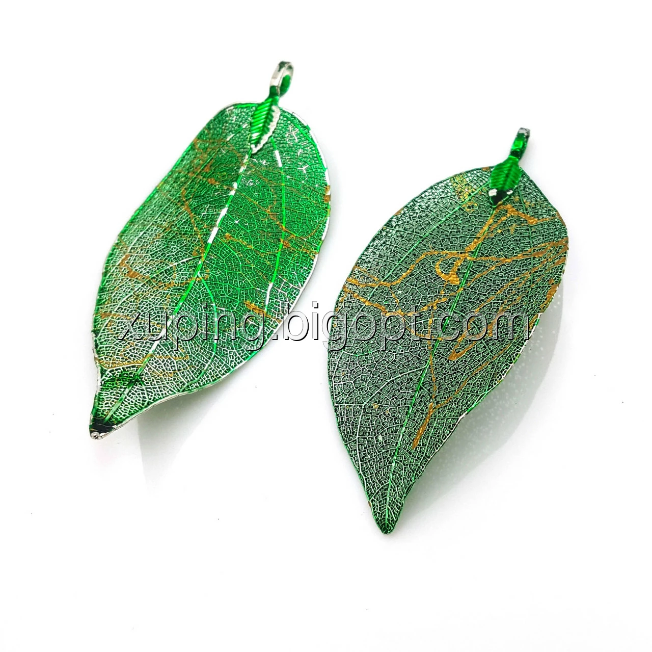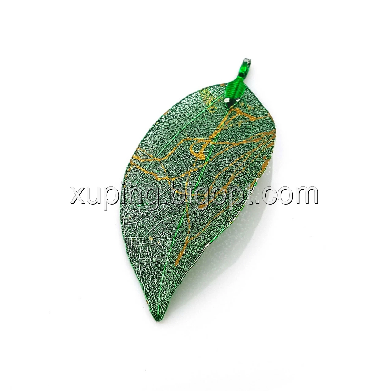 Кулон Зелений Лист, з золотистим узором, позолота