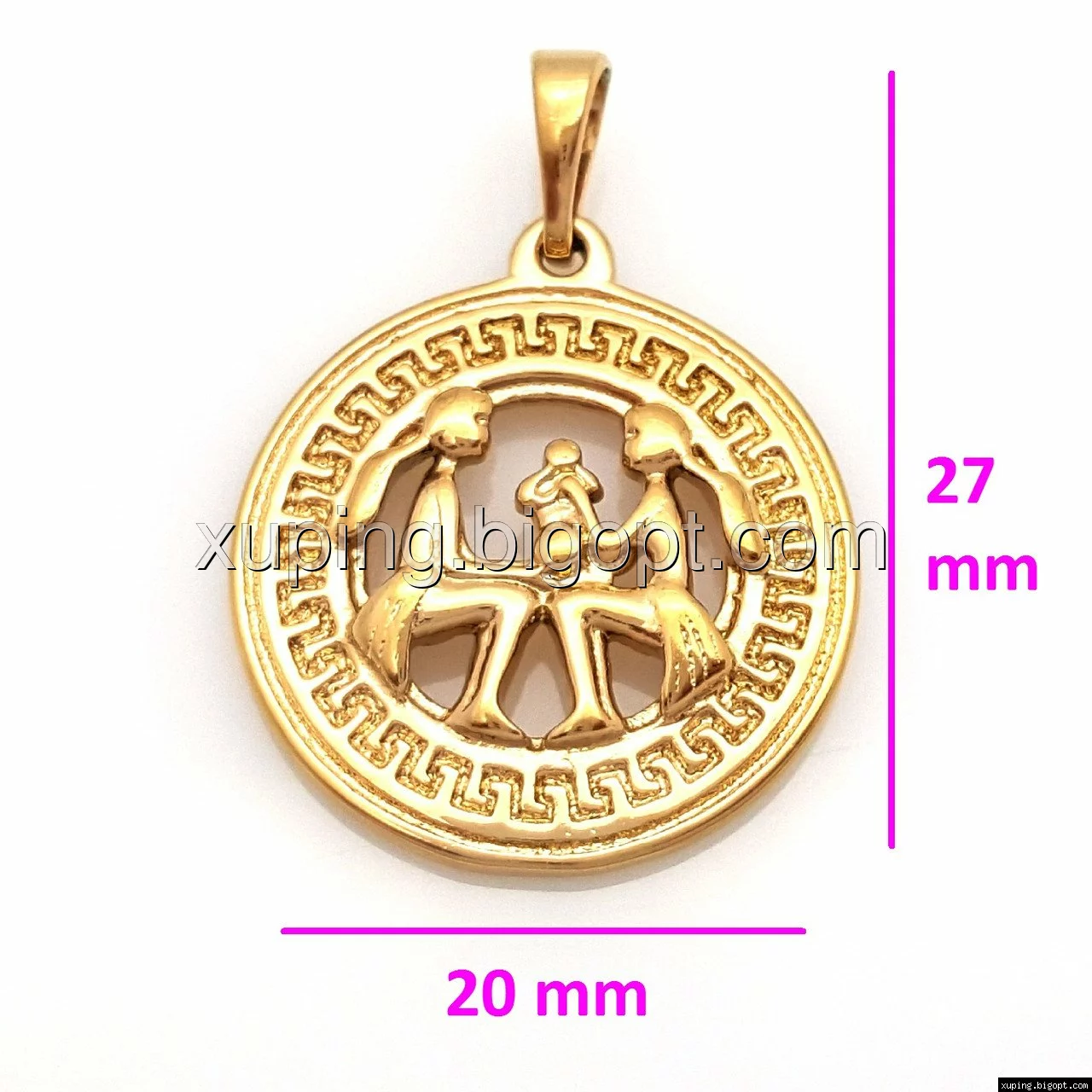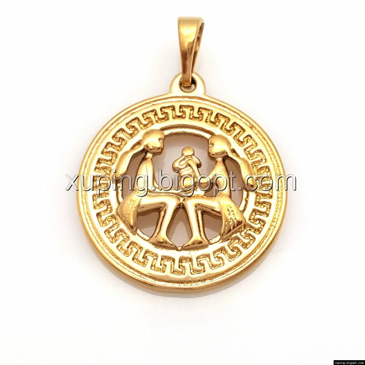 Кулон Знак Зодиака "Близнецы", с греческим узором, без камней, позолота