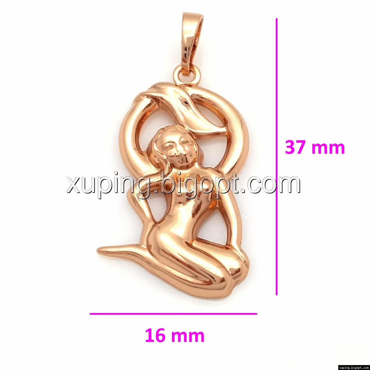 Кулон выполнен из медицинского сплава на основе латуни с добавлением легирующих элементов, с целью улучшения каких-либо его свойств, например коррозионной стойкости или прочности. Такой сплав не вызывает аллергии, не вступает в реакцию с потом человека, не меняет свои свойства под воздействием соленой воды и солнца. Поверхность изделия покрыта золотом 14 карата.
