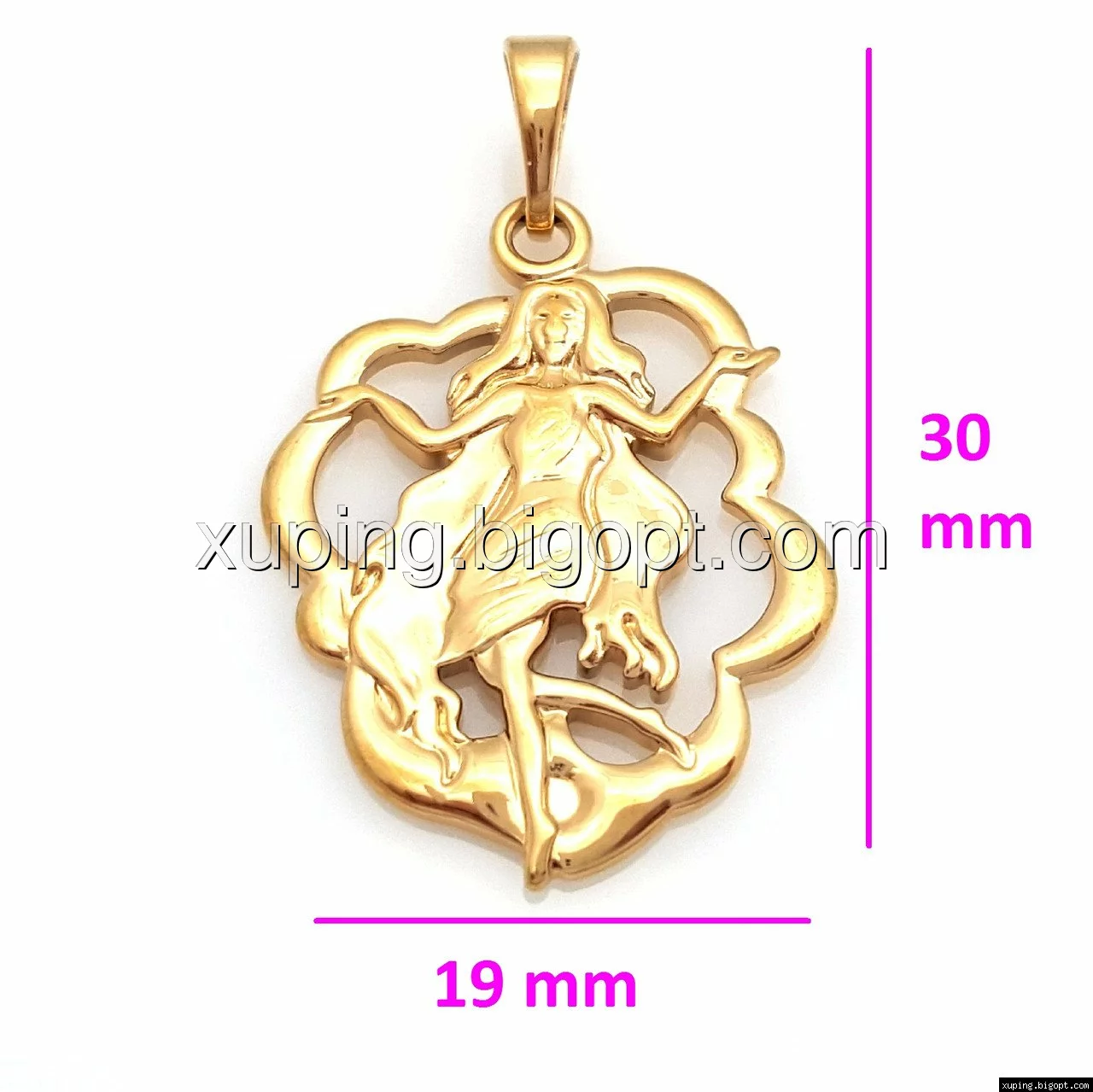 Кулон выполнен из медицинского сплава на основе латуни с добавлением легирующих элементов, с целью улучшения каких-либо его свойств, например коррозионной стойкости или прочности. Такой сплав не вызывает аллергии, не вступает в реакцию с потом человека, не меняет свои свойства под воздействием соленой воды и солнца. Поверхность изделия покрыта золотом 18 карата.