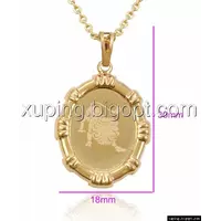 Кулон выполнен из медицинского сплава на основе латуни с добавлением легирующих элементов, с целью улучшения каких-либо его свойств, например коррозионной стойкости или прочности. Такой сплав не вызывает аллергии, не вступает в реакцию с потом человека, не меняет свои свойства под воздействием соленой воды и солнца. Поверхность изделия покрыта золотом 18 карата.