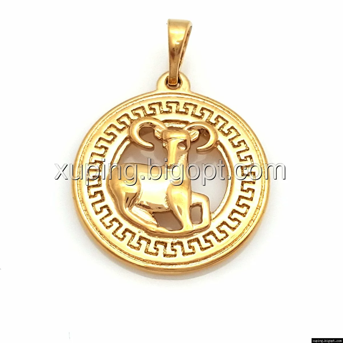 Кулон Знак Зодиака "Овен", с греческим узором, без камней, позолота
