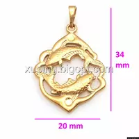 Кулон выполнен из медицинского сплава на основе латуни с добавлением легирующих элементов, с целью улучшения каких-либо его свойств, например коррозионной стойкости или прочности. Такой сплав не вызывает аллергии, не вступает в реакцию с потом человека, не меняет свои свойства под воздействием соленой воды и солнца. Поверхность изделия покрыта золотом 18 карата.
