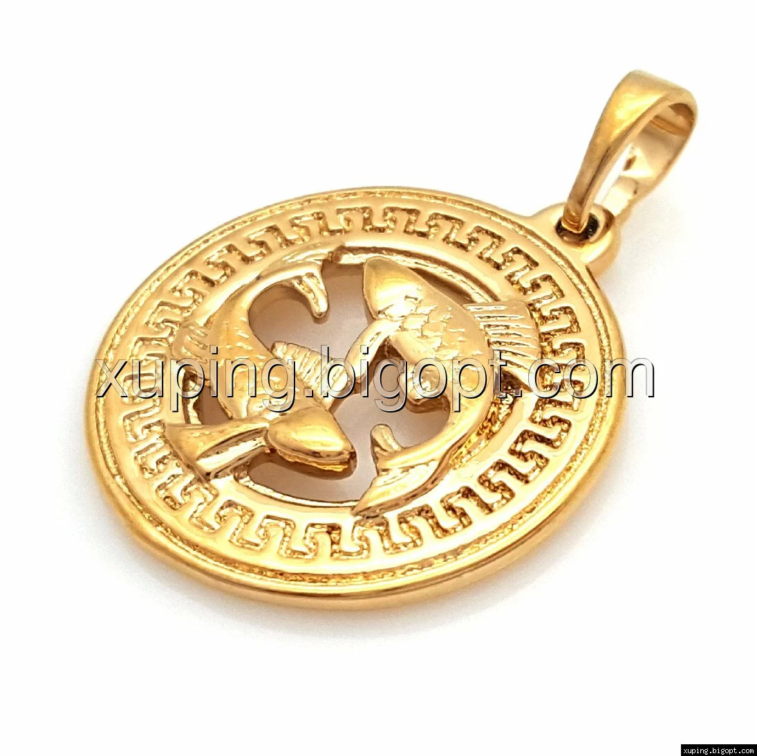 Кулон Знак Зодиака "Рыбы", с греческим узором, без камней, позолота
