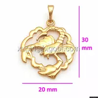 Кулон выполнен из медицинского сплава на основе латуни с добавлением легирующих элементов, с целью улучшения каких-либо его свойств, например коррозионной стойкости или прочности. Такой сплав не вызывает аллергии, не вступает в реакцию с потом человека, не меняет свои свойства под воздействием соленой воды и солнца. Поверхность изделия покрыта золотом 18 карата.