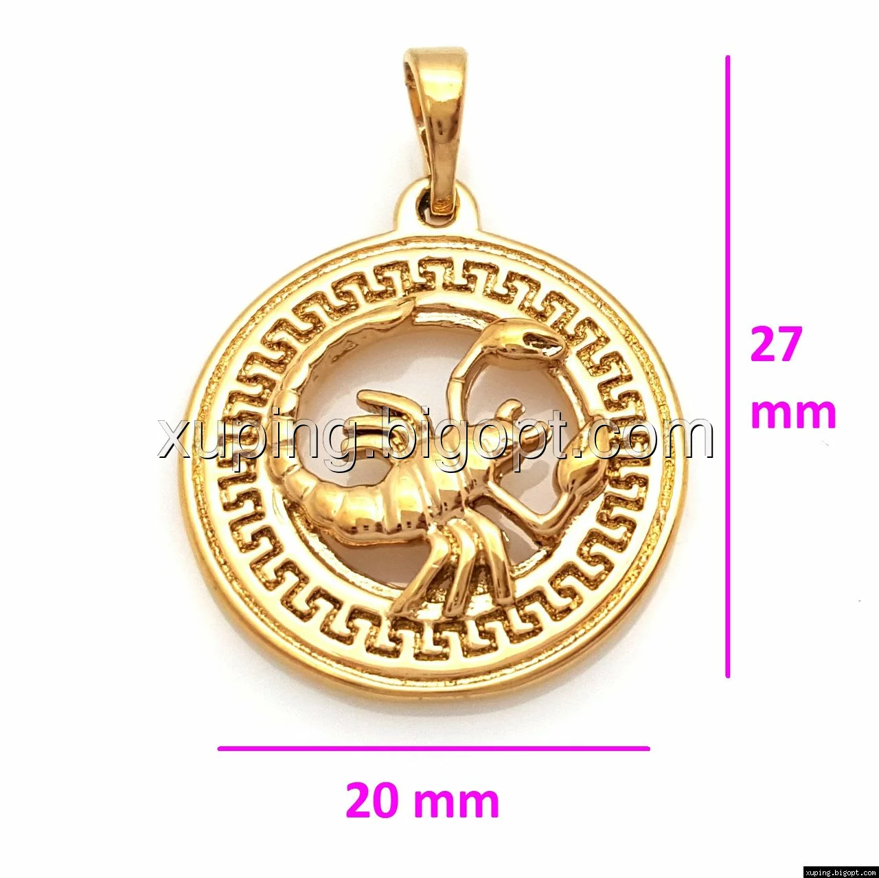 Кулон Знак Зодиака "Скорпион", с греческим узором, без камней, позолота