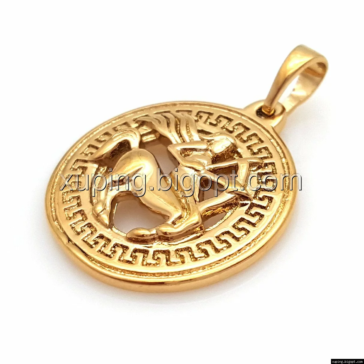 Кулон Знак Зодіаку "Стрілець", з грецьким візерунком, без каменів, позолота