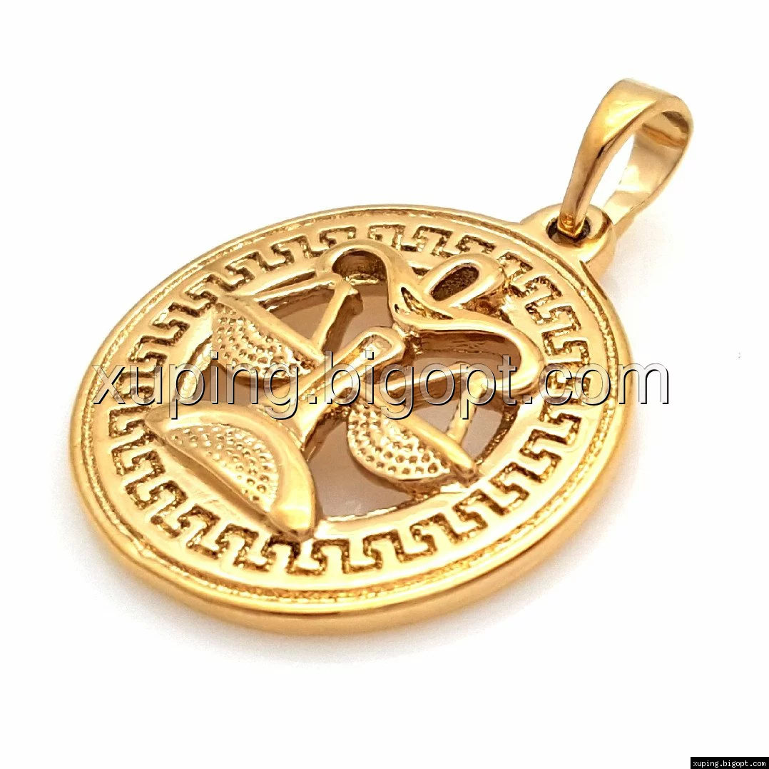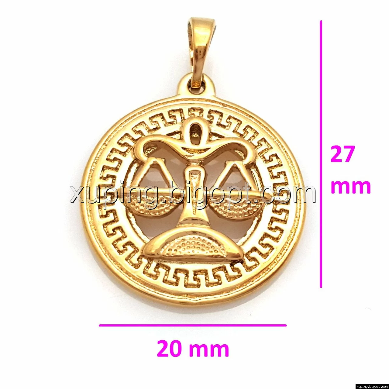Кулон Знак Зодіаку "Ваги", з грецьким візерунком, без каменів, позолота