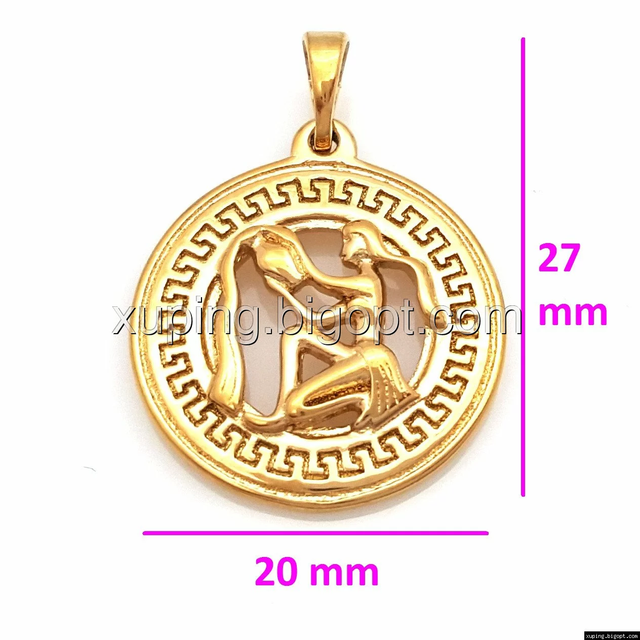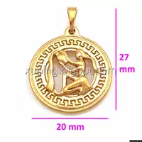 Кулон Знак Зодиака "Водолей", с греческим узором, без камней, позолота