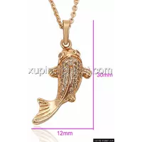 Кулон выполнен из медицинского сплава на основе латуни с добавлением легирующих элементов, с целью улучшения каких-либо его свойств, например коррозионной стойкости или прочности. Такой сплав не вызывает аллергии, не вступает в реакцию с потом человека, не меняет свои свойства под воздействием соленой воды и солнца. Поверхность изделия покрыта золотом 14 карата.