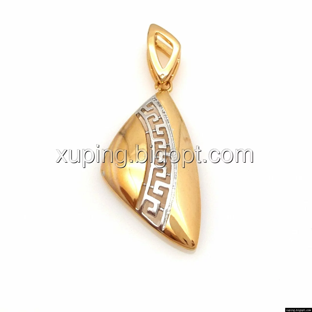 Кулон Асимметрия, с греческим рисунком, без камней, позолота+родий, Xuping
