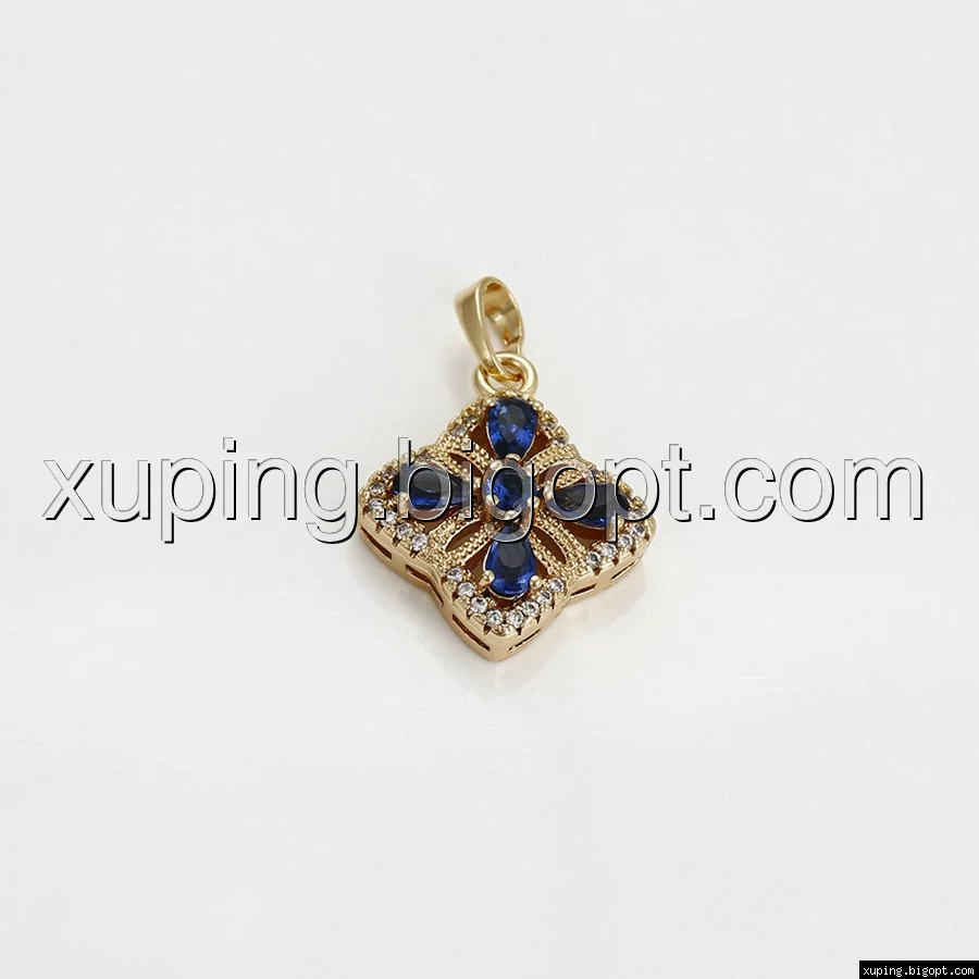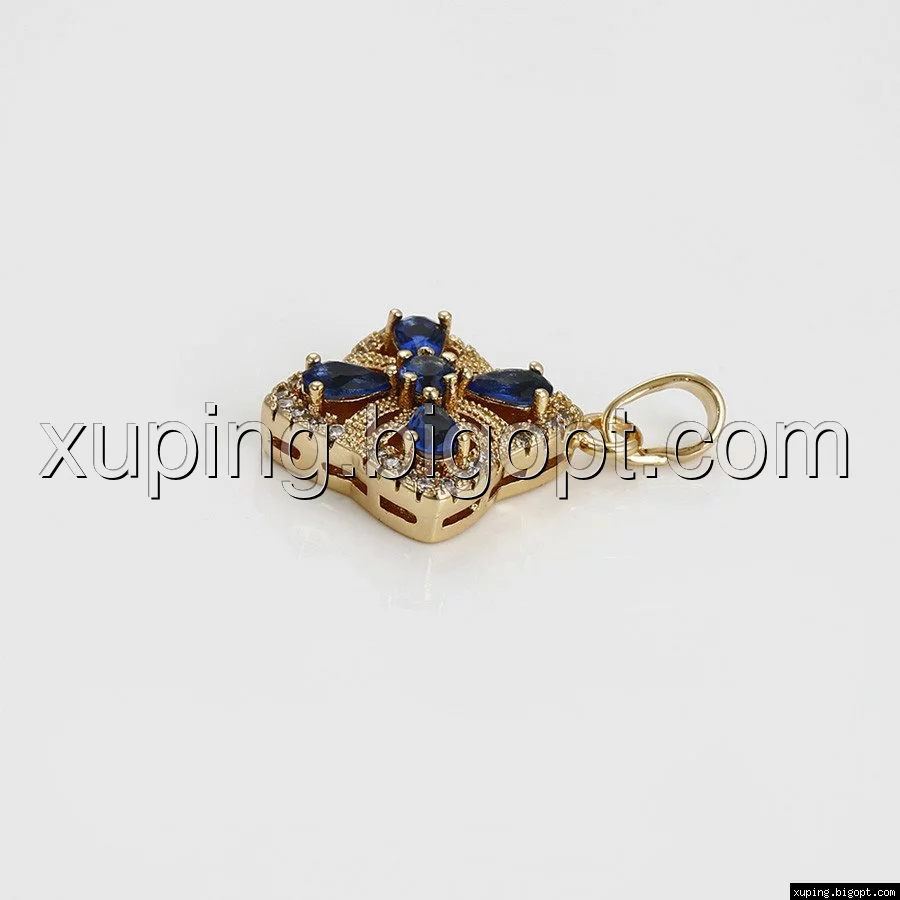 Кулон Ажурный цветок, с синим цирконием, позолота