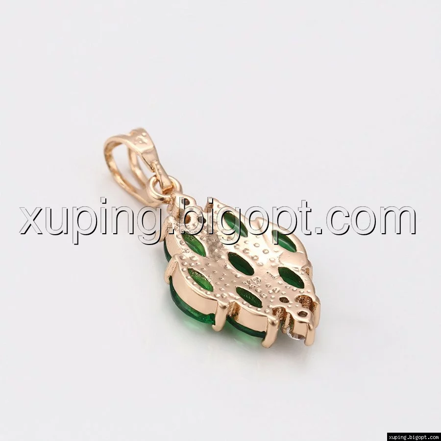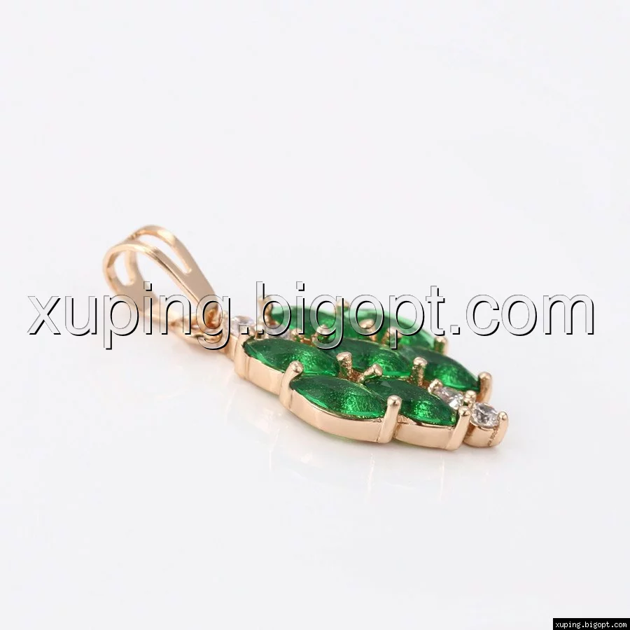 Кулон Зеленый Цветок, с циркония, позолота