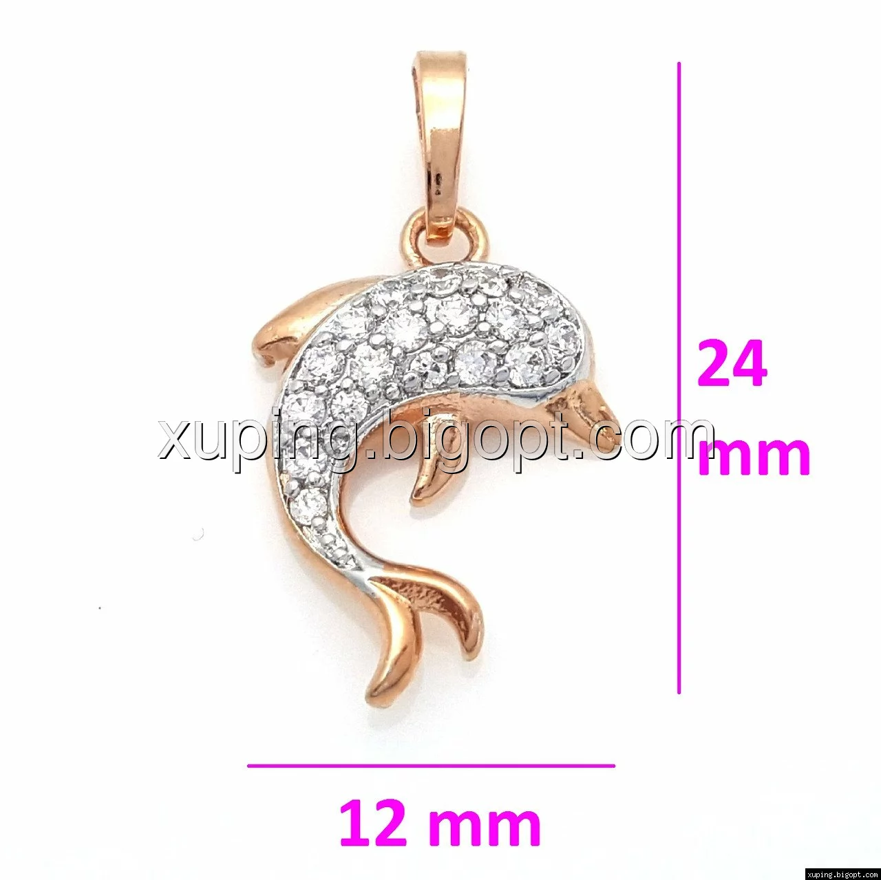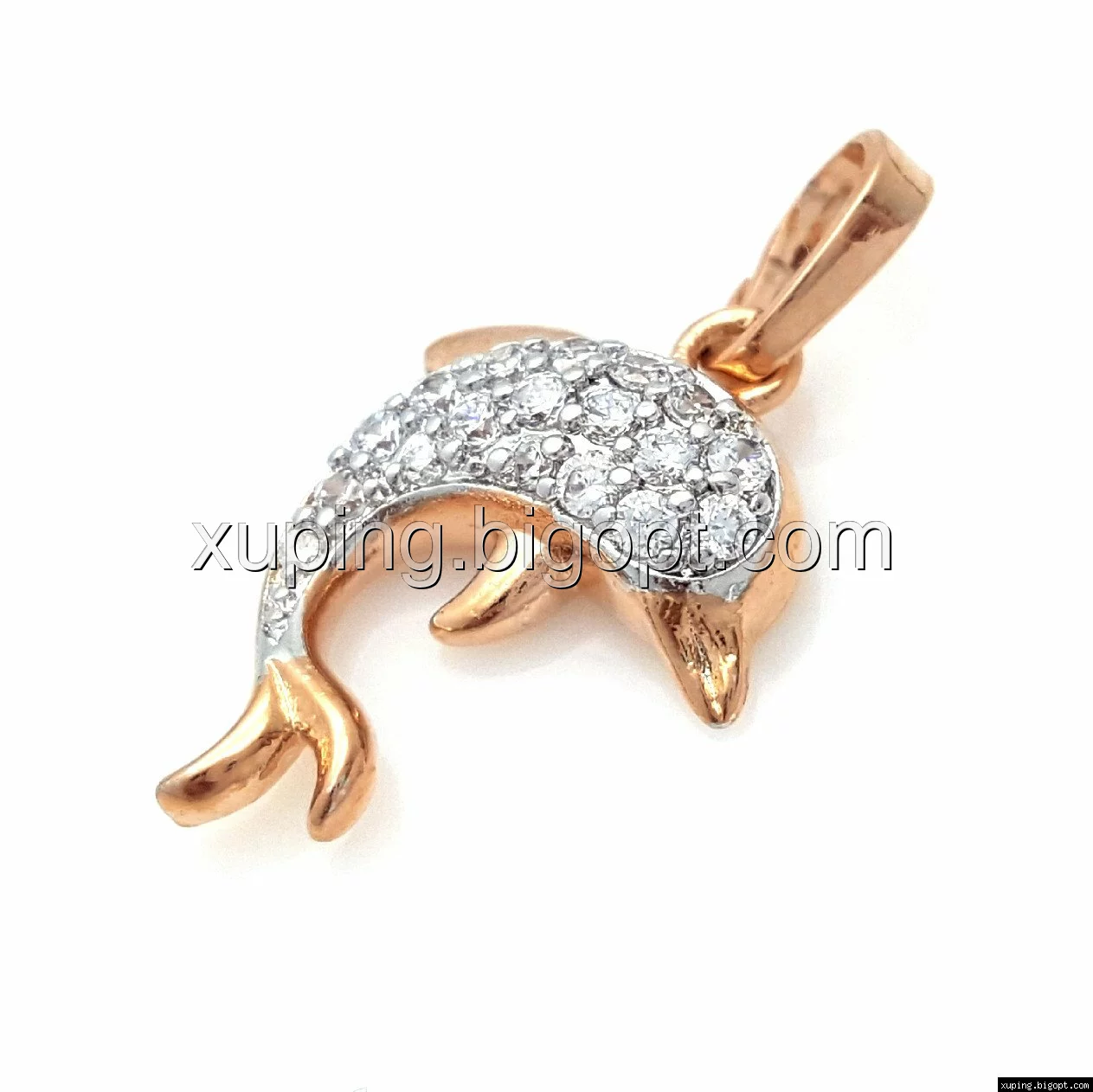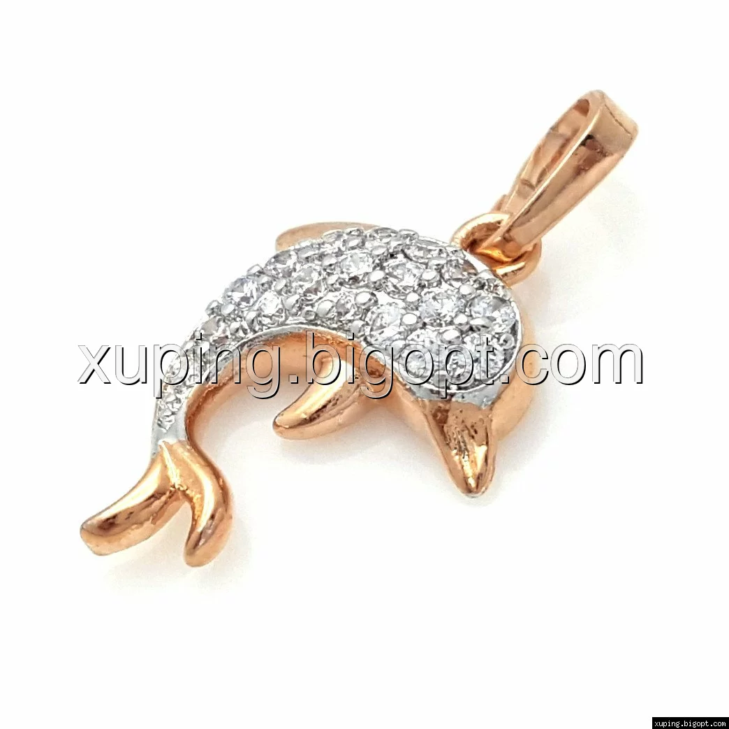 Кулон Дельфинчик с цирконами, позолота+родий Xuping
