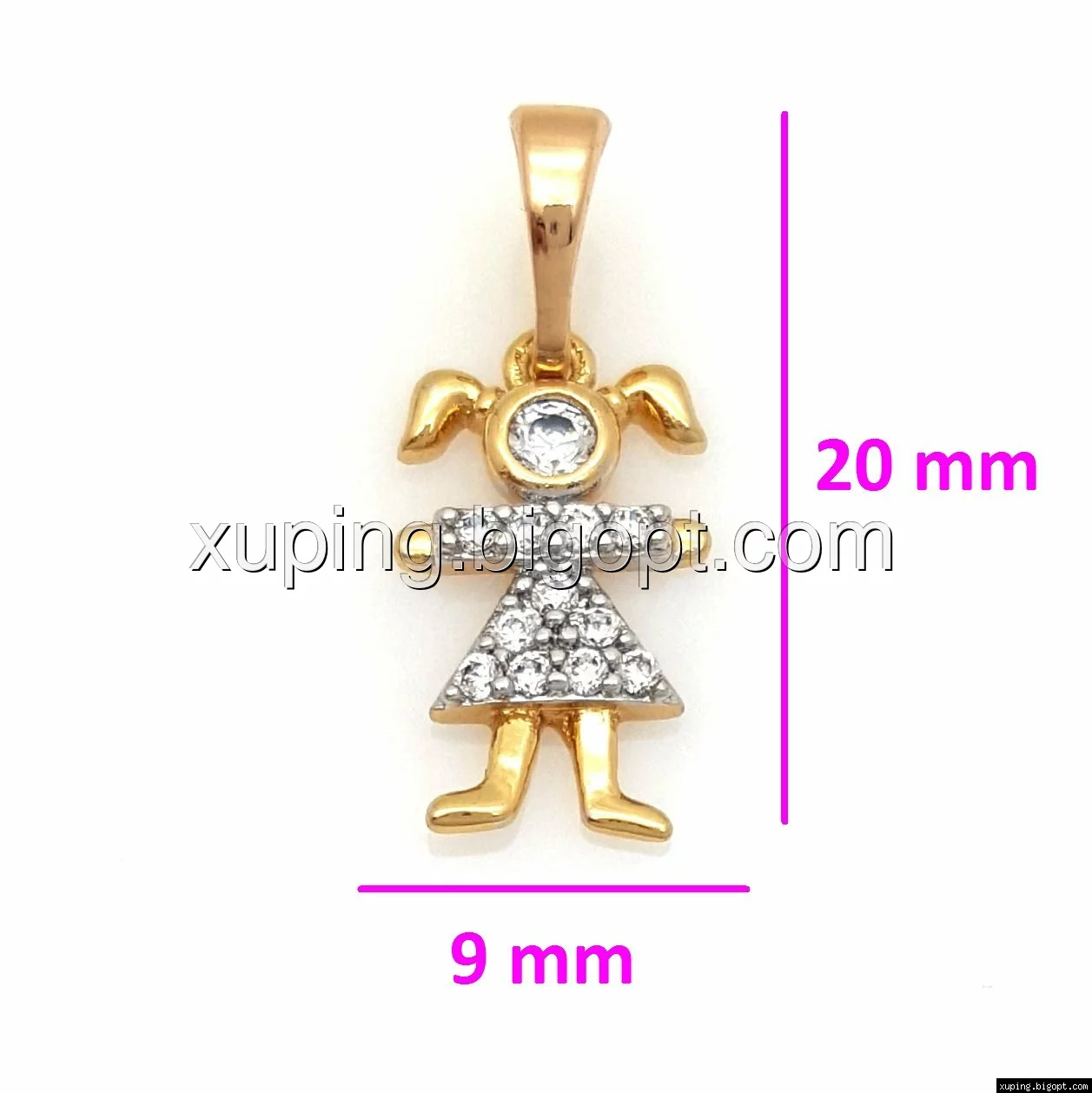 Кулон Девочка, с россыпью камней, позолота+родий, Xuping
