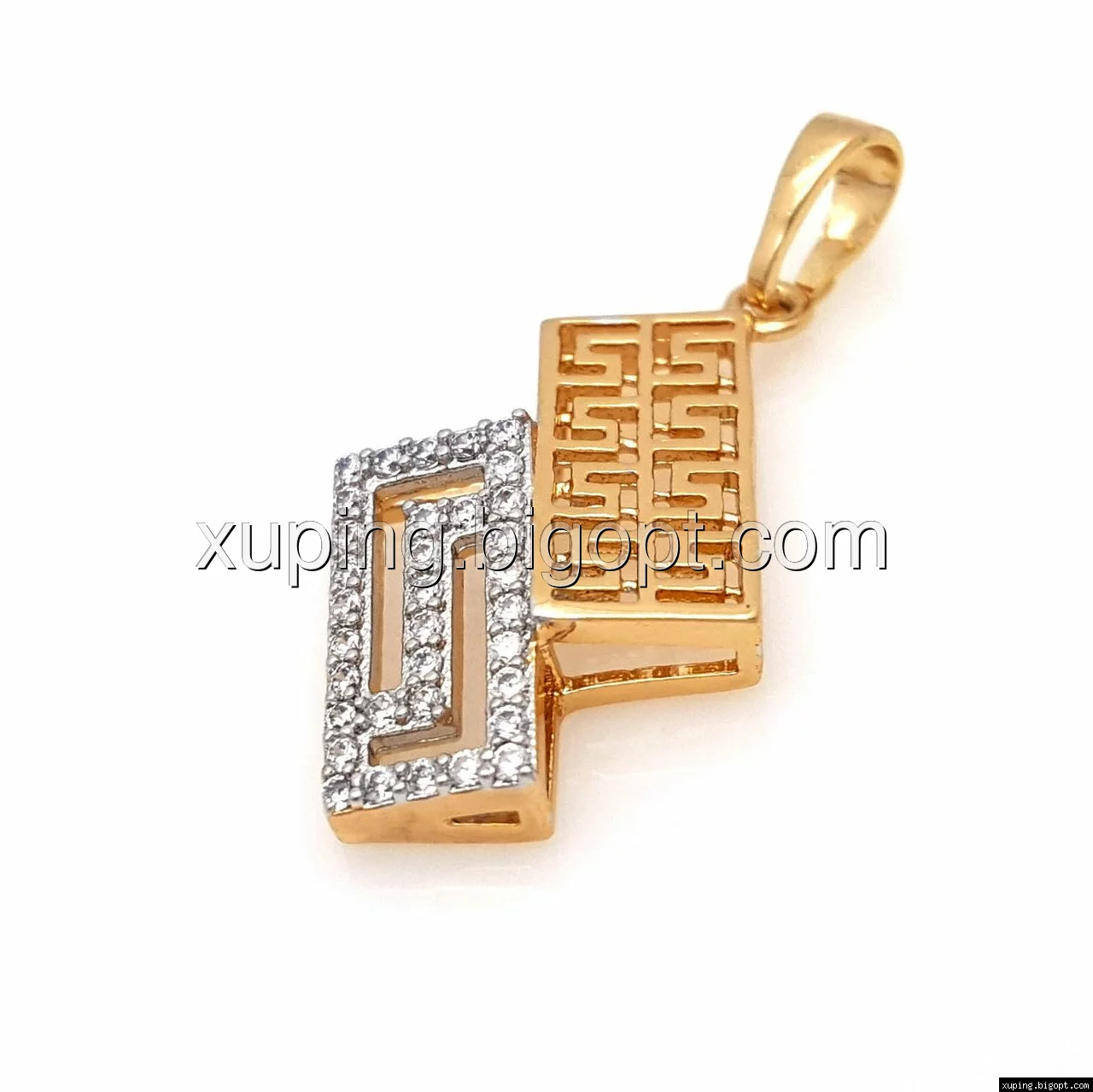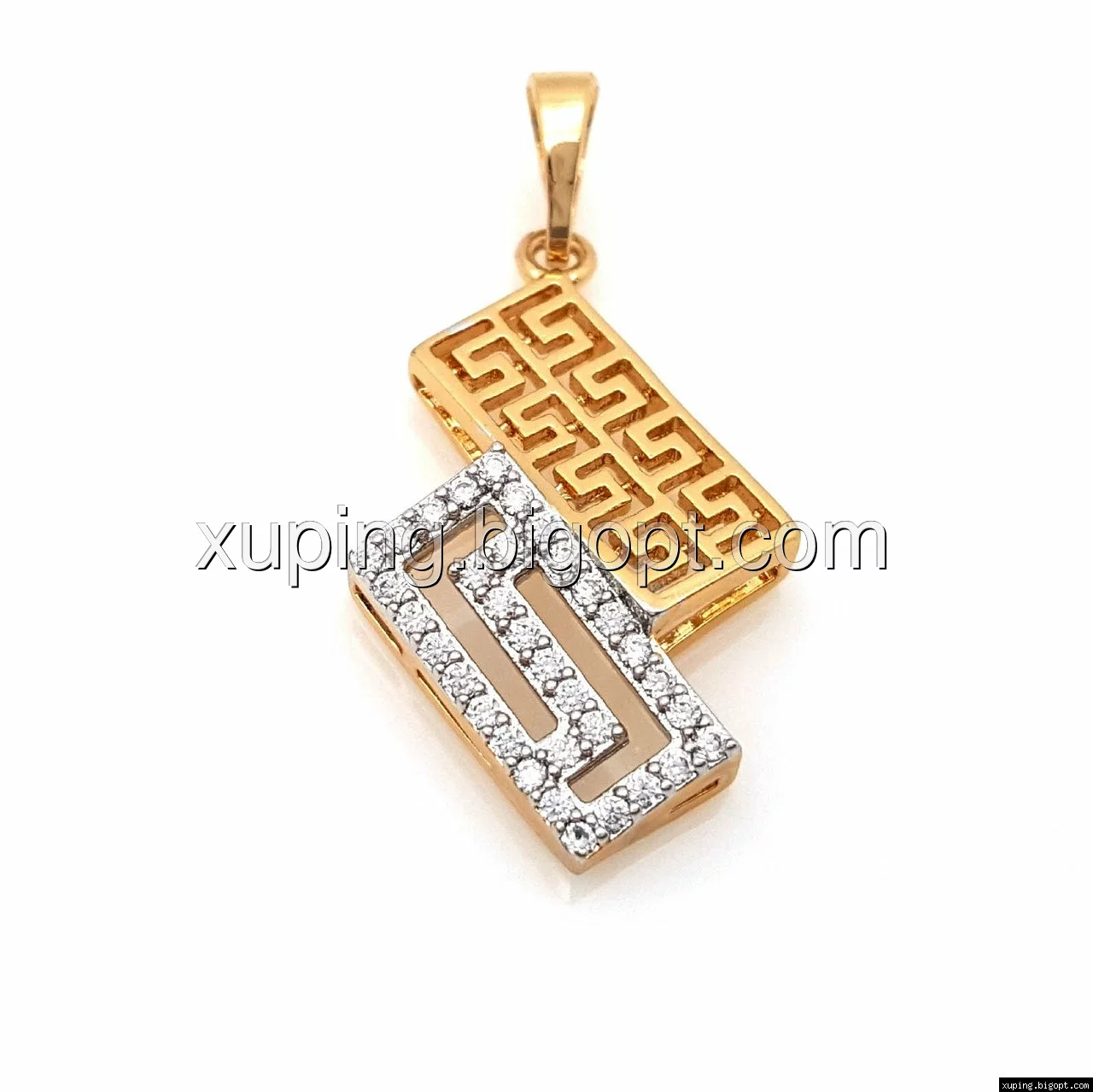 Кулон Зигзаг, греческий узор и россыпь камней, позолота+родий