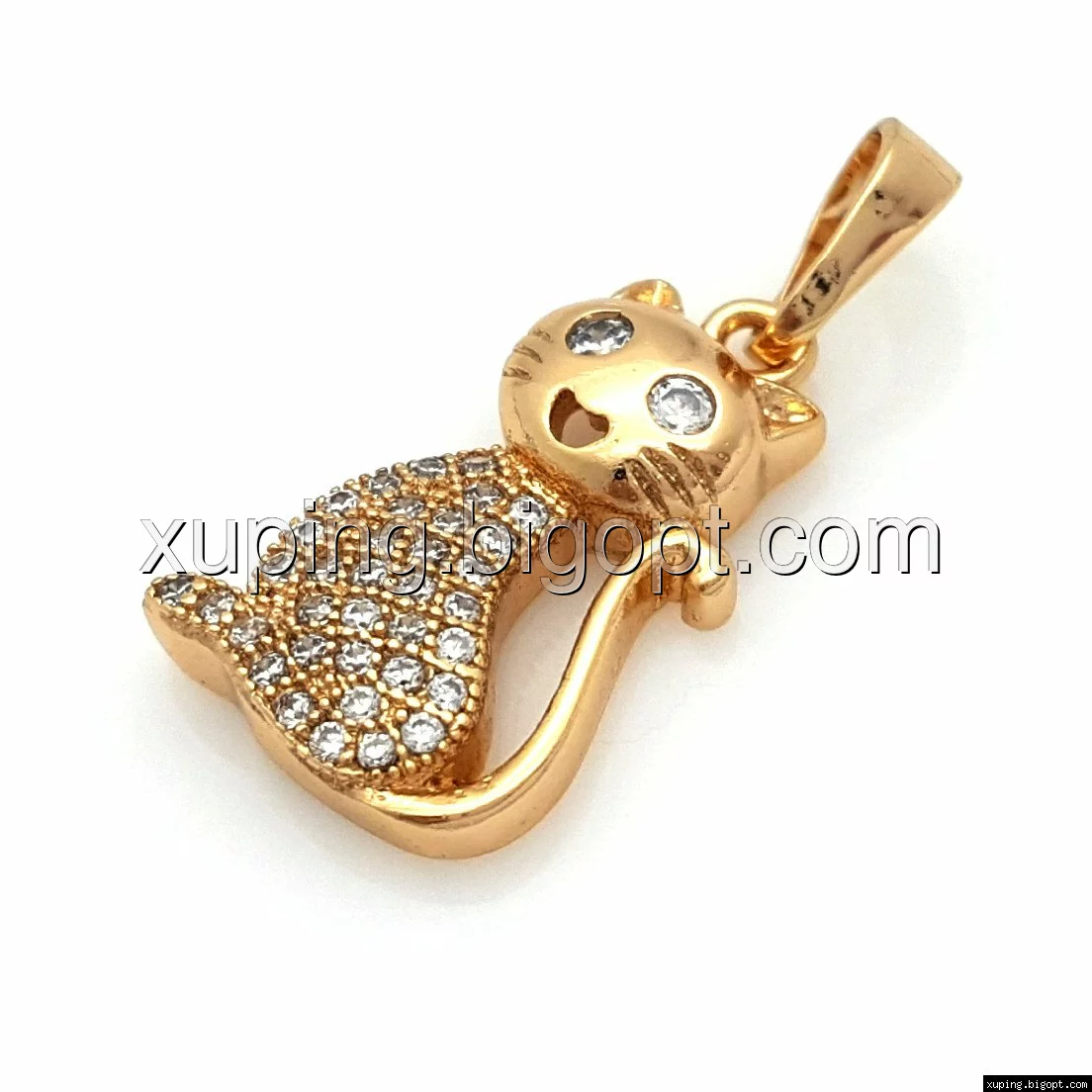 Кулон Котенок, с камнями, позолота Xuping