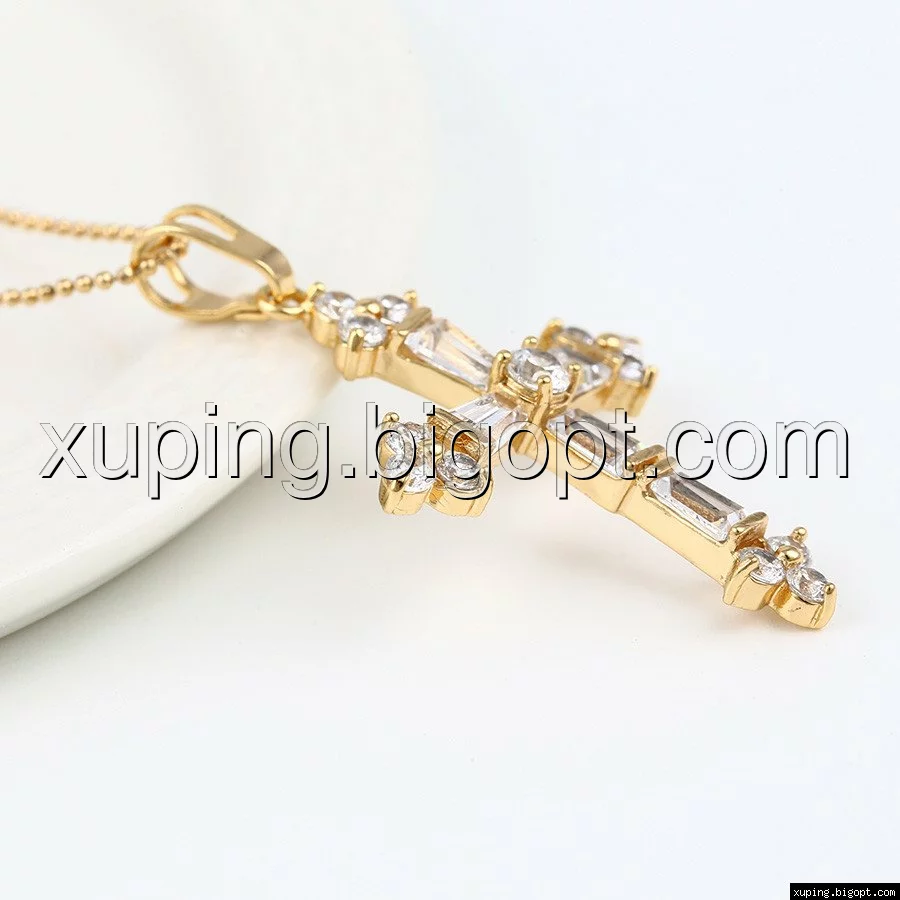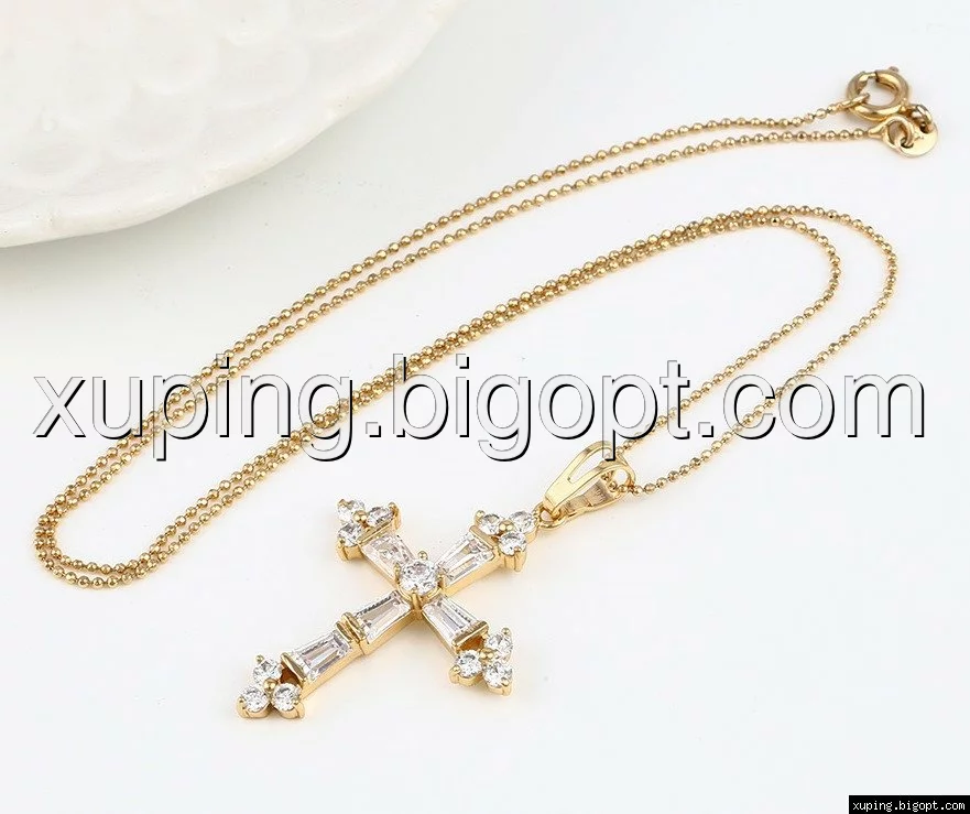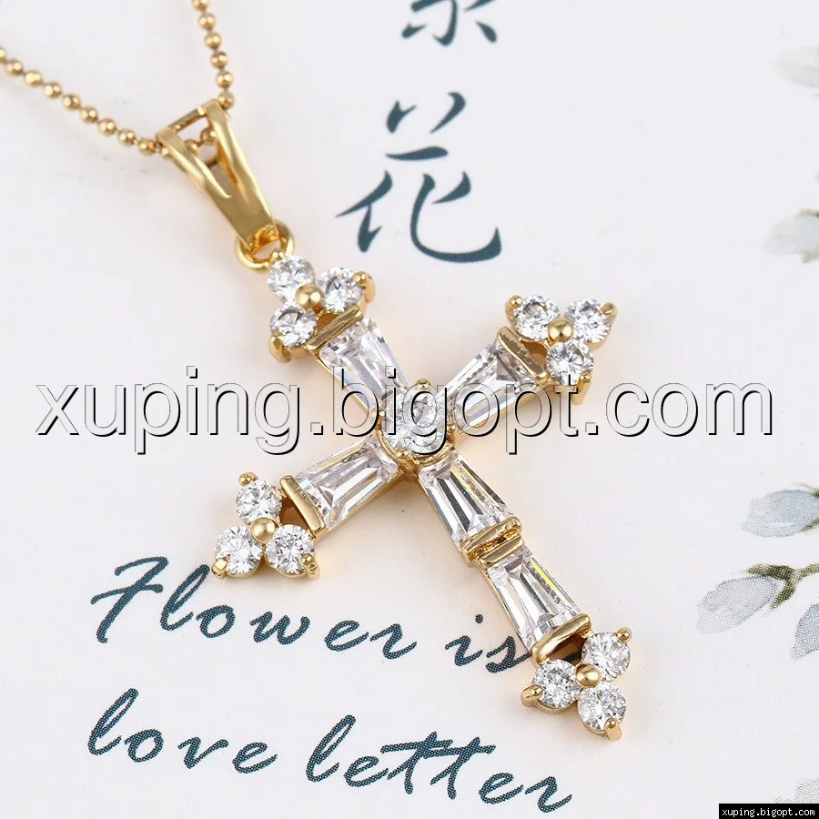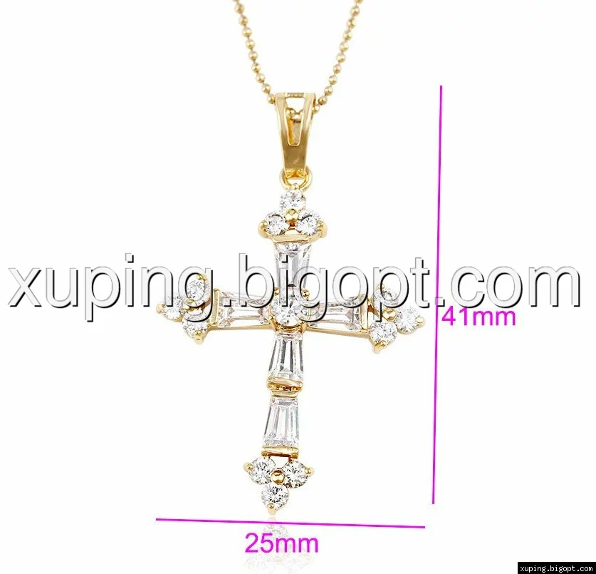 Кулон Крест позолоченный с багетным цирконием