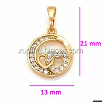 Кулон Круг и Два Сердца, с цирконием, позолота