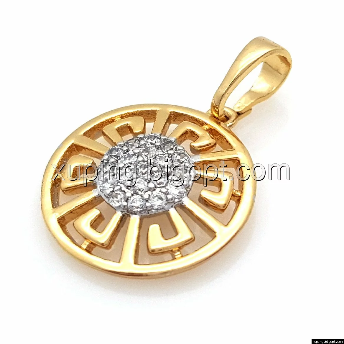 Кулон Круг с греческим рисунком, россыпь циркония, позолота+родий