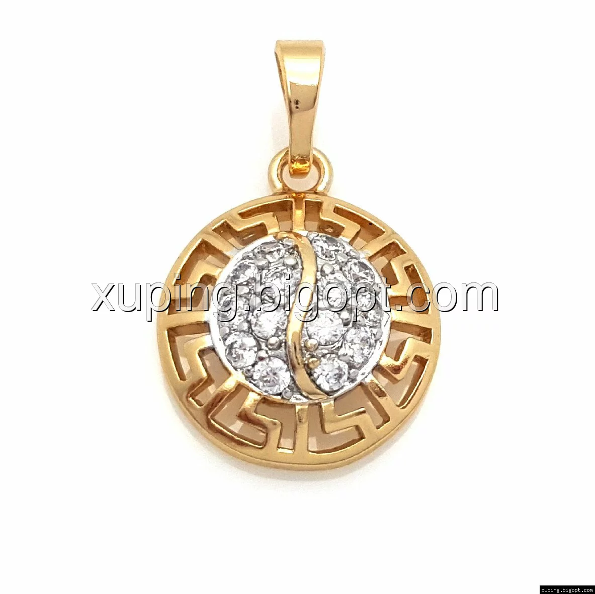 Кулон Круг с грецким узором и камнями, позолота+родий