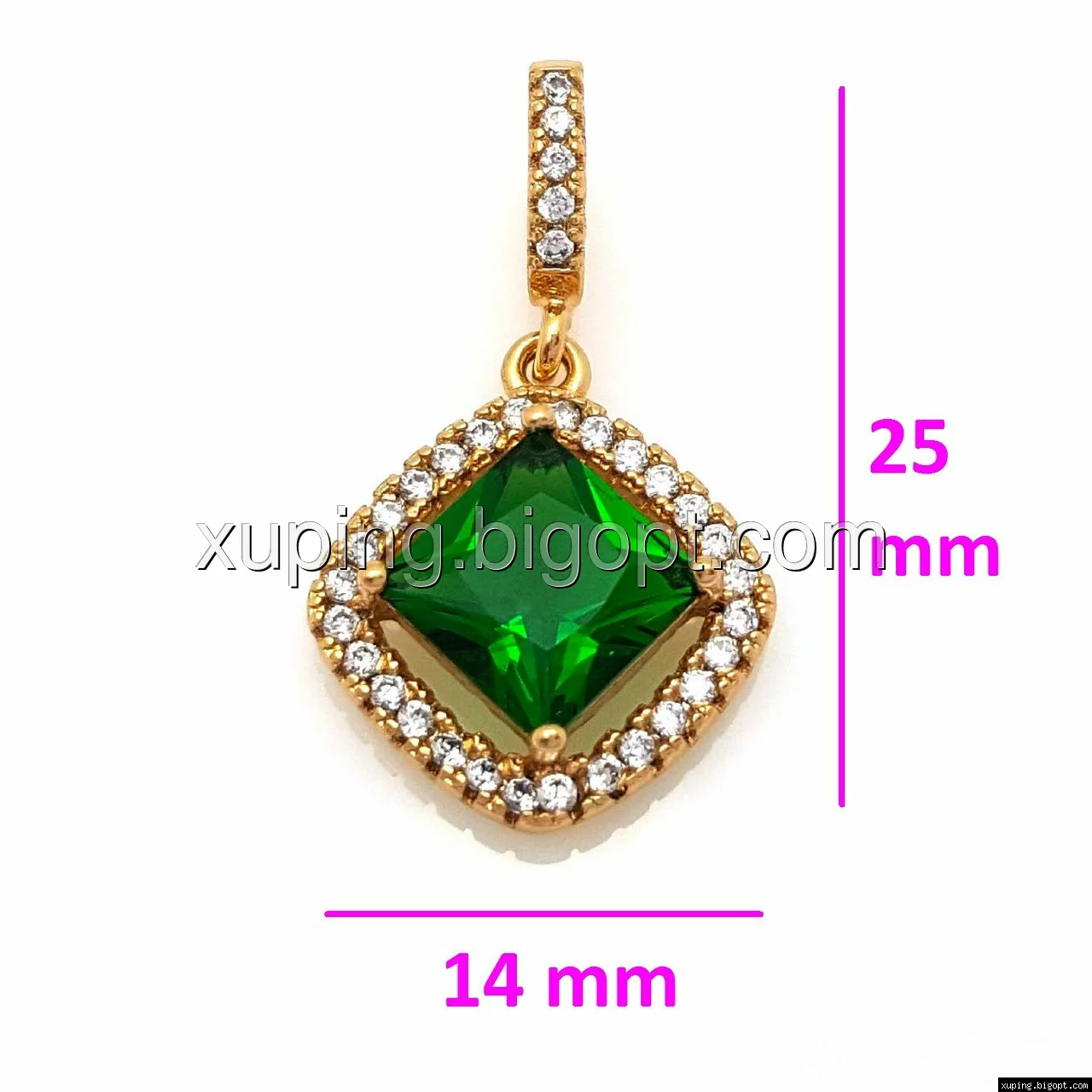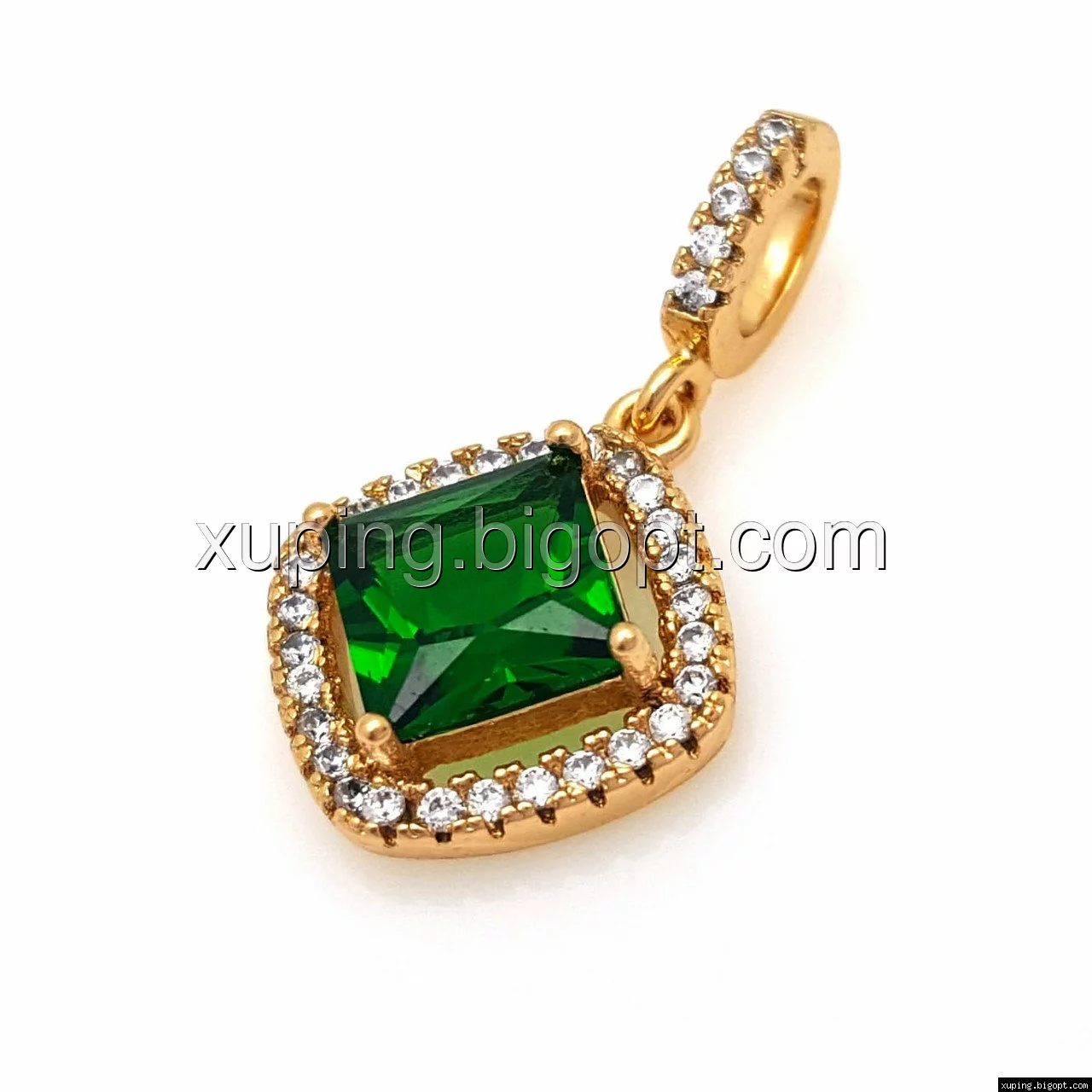 Кулон Квадрат с зеленым цирконием, позолота Xuping