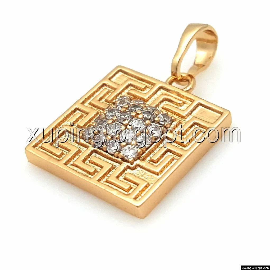 Кулон Квадрат с греческим узором, россыпь циркония, позолота