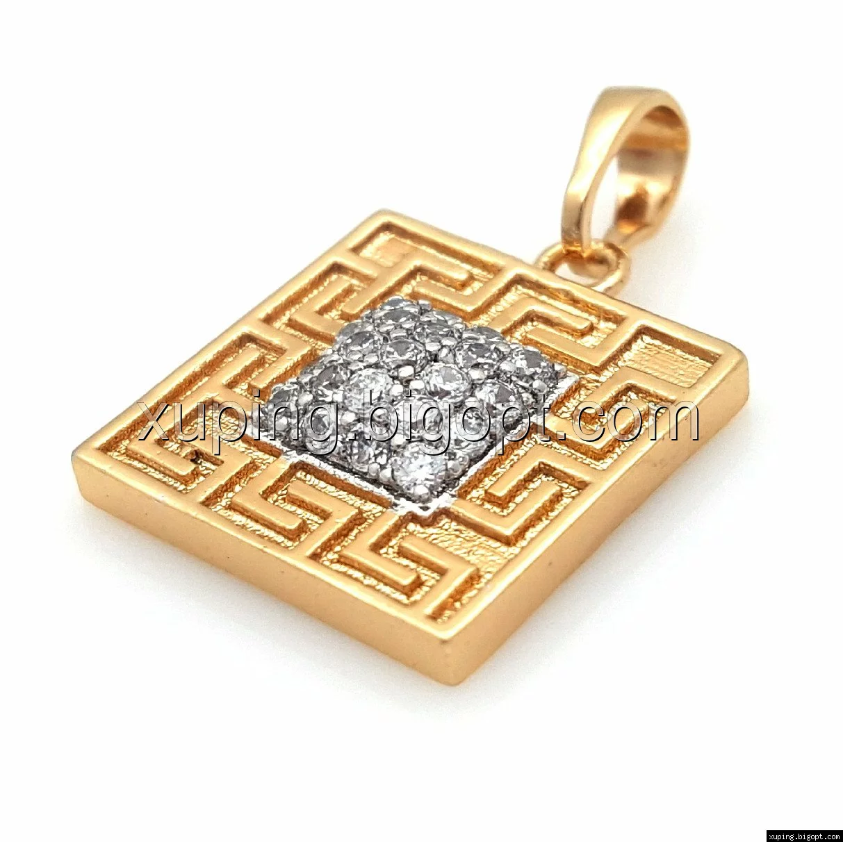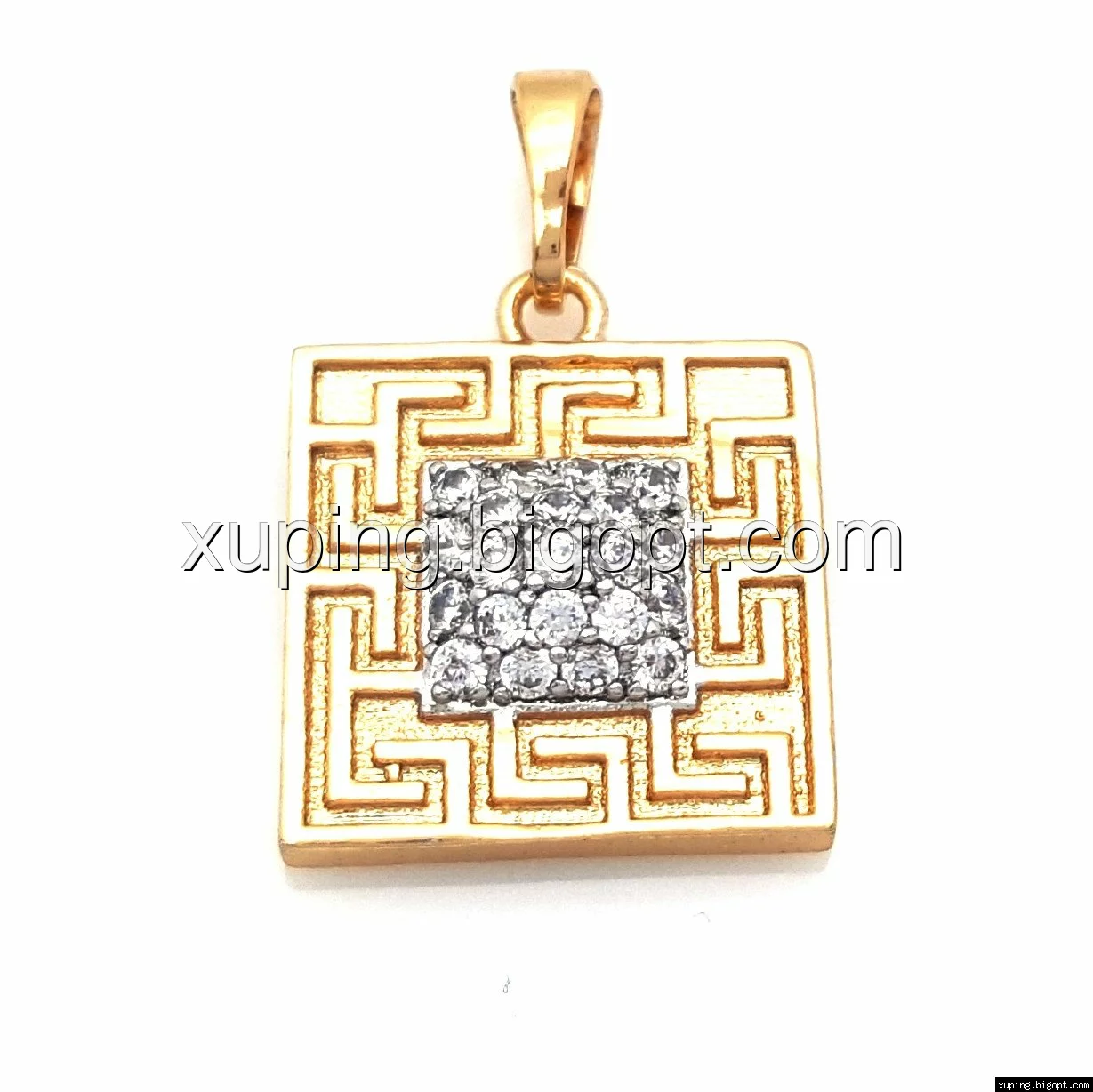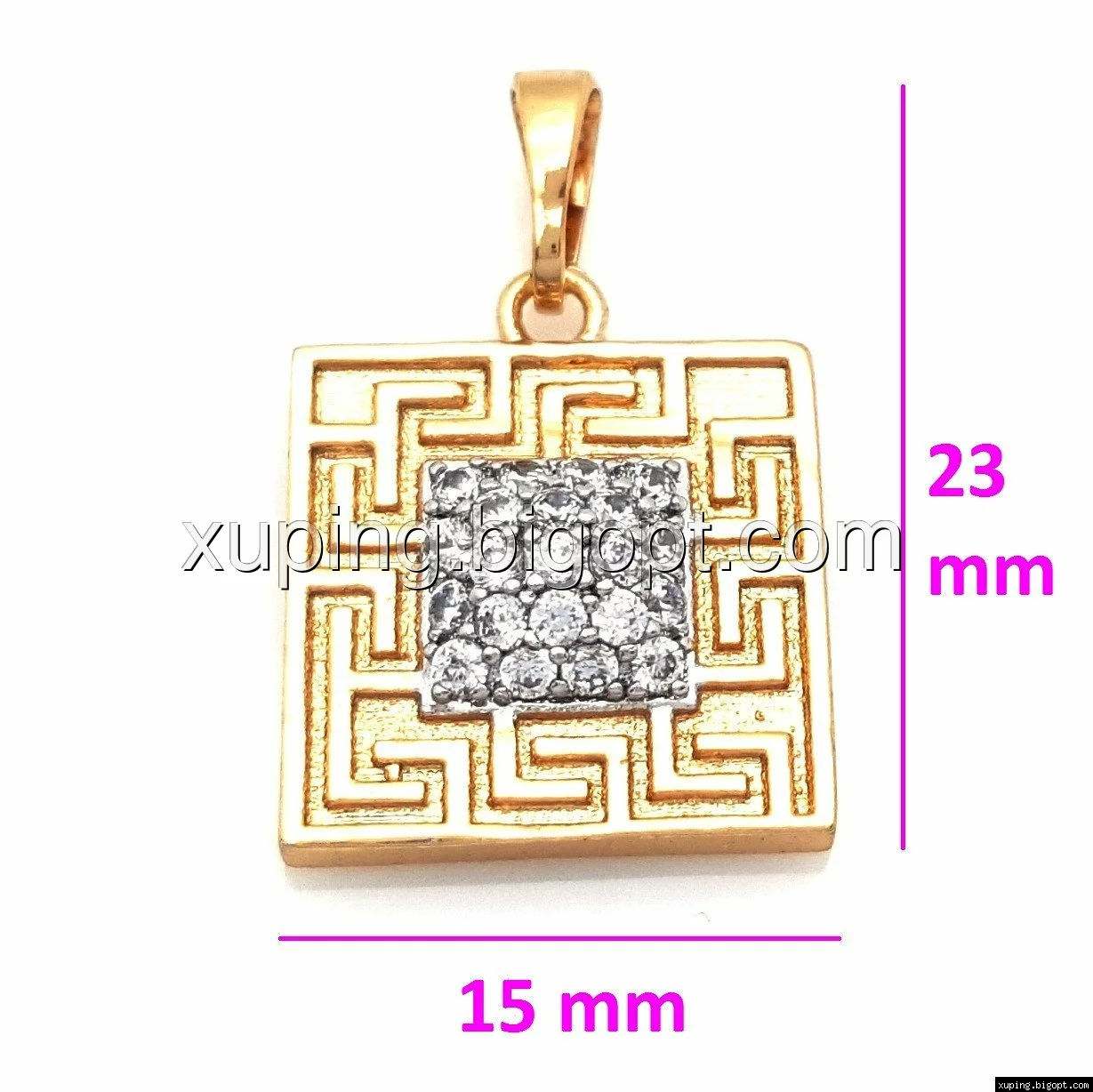 Кулон Квадрат со вставкой циркония и грецким узором, позолота+родий