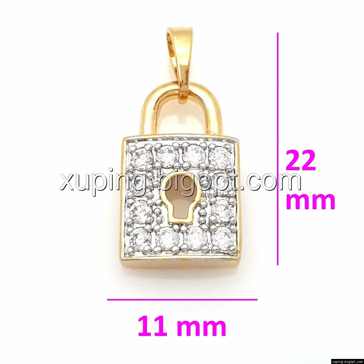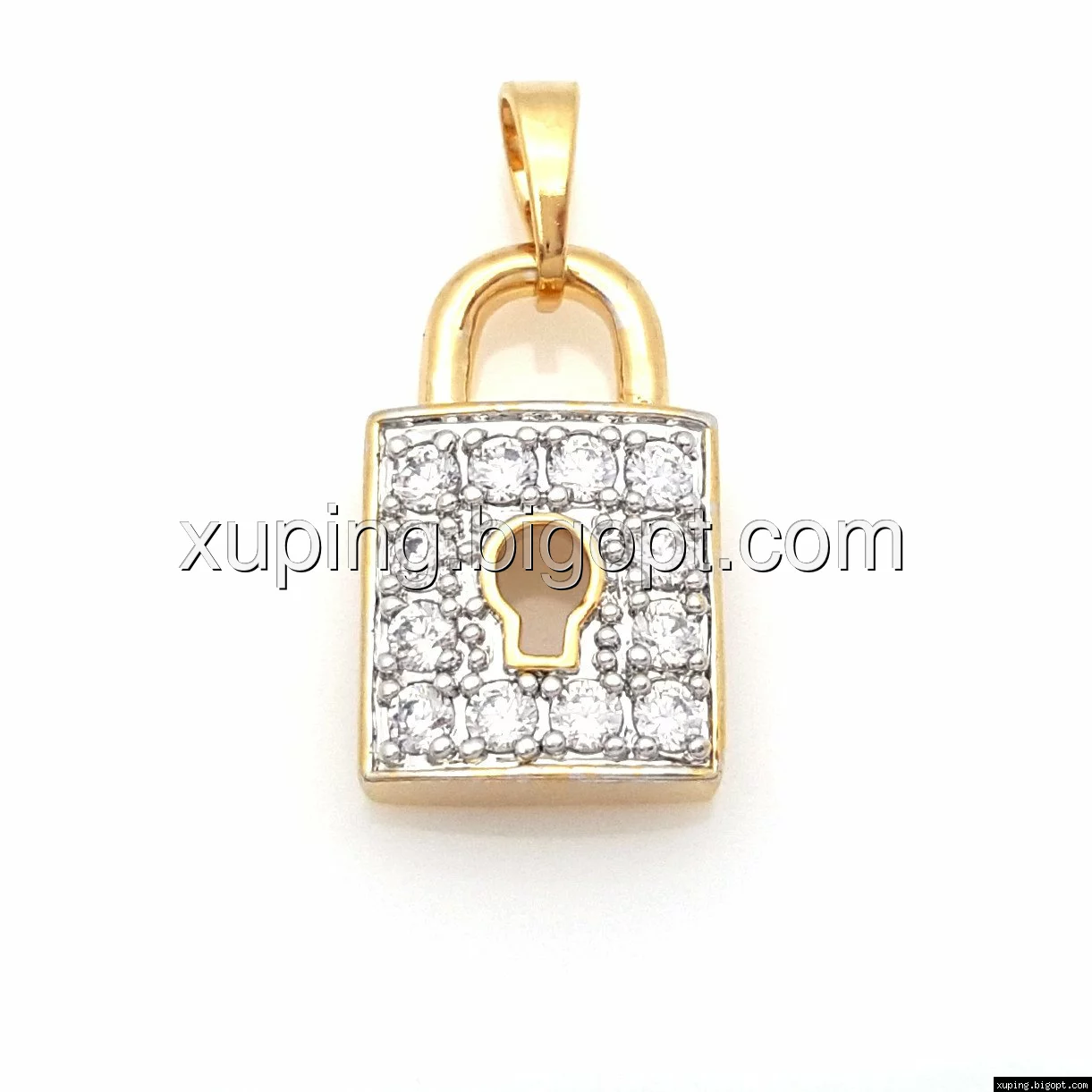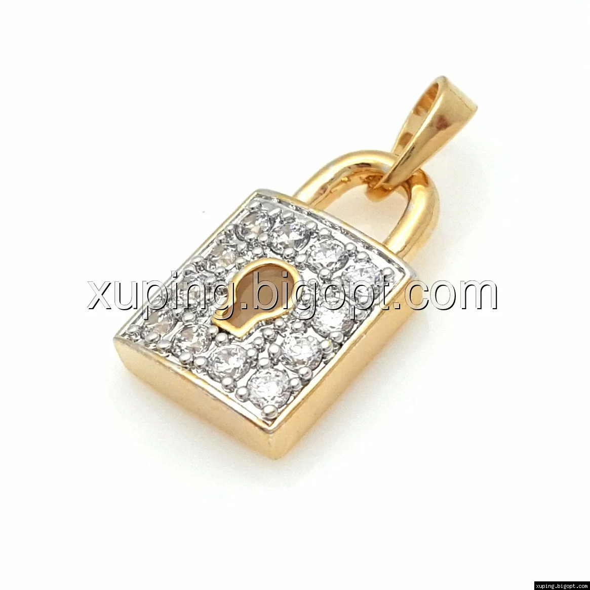 Кулон Замочек, с цирконием, позолота+родий