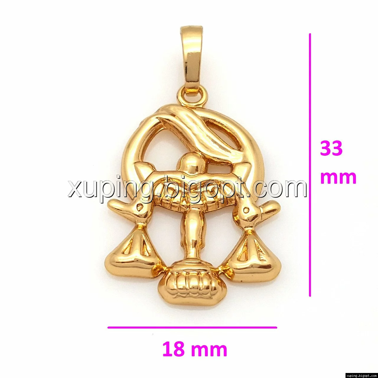Кулон выполнен из медицинского сплава на основе латуни с добавлением легирующих элементов, с целью улучшения каких-либо его свойств, например коррозионной стойкости или прочности. Такой сплав не вызывает аллергии, не вступает в реакцию с потом человека, не меняет свои свойства под воздействием соленой воды и солнца. Поверхность изделия покрыта золотом 18 карата.