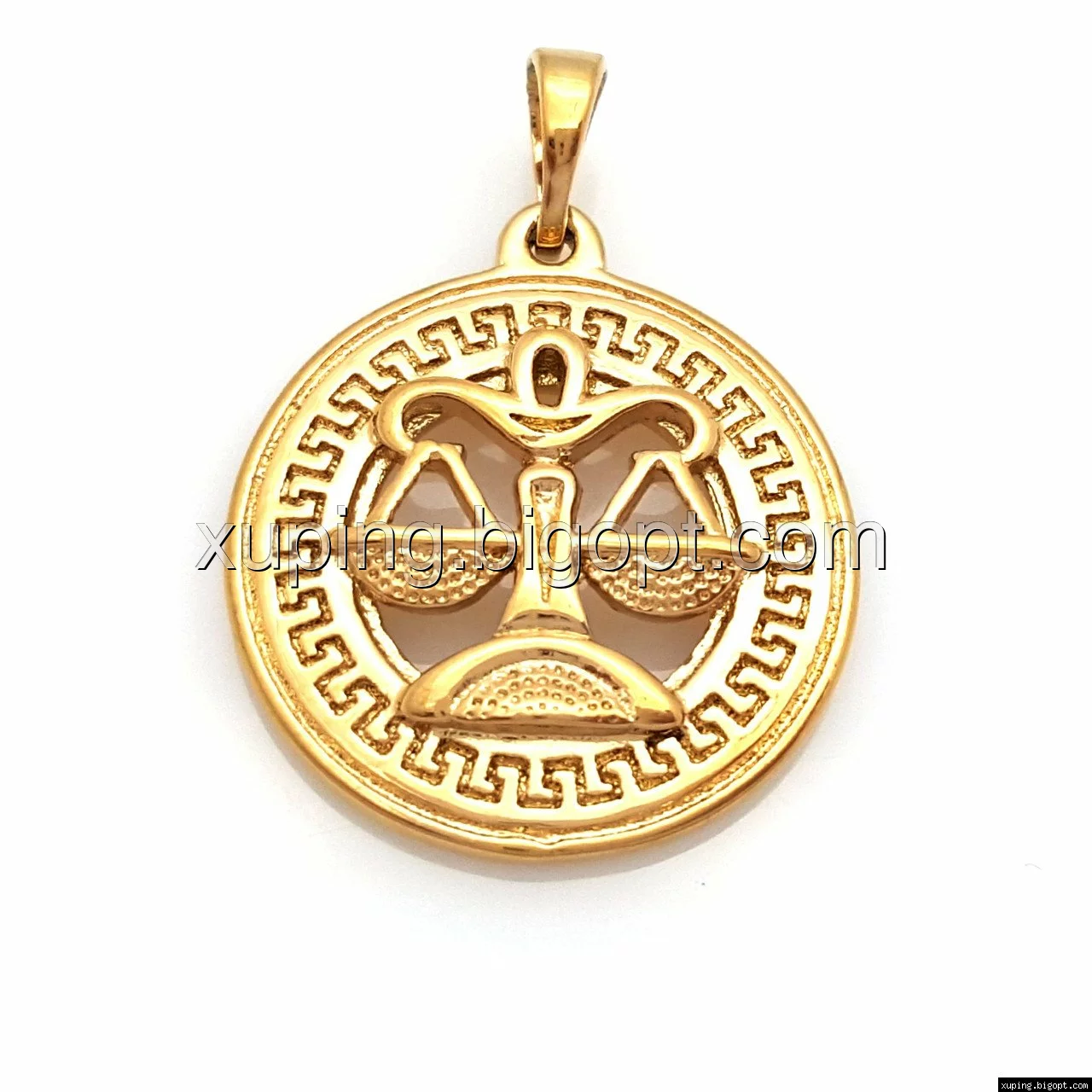 Кулон Знак Зодиака "Весы", с греческим узором, без камней, позолота