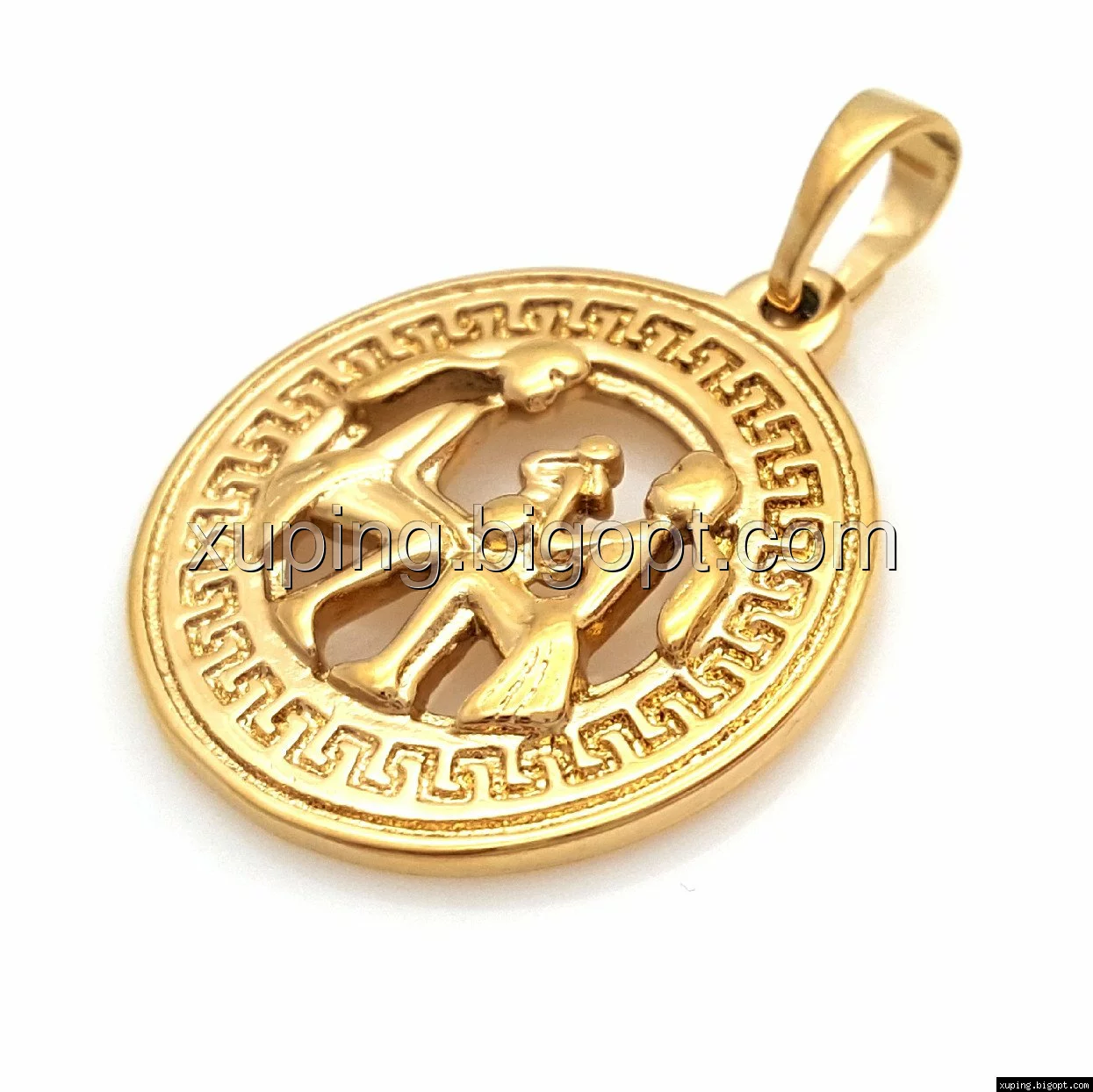 Кулон Знак Зодиака "Близнецы", с греческим узором, без камней, позолота