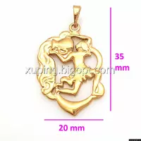 Кулон выполнен из медицинского сплава на основе латуни с добавлением легирующих элементов, с целью улучшения каких-либо его свойств, например коррозионной стойкости или прочности. Такой сплав не вызывает аллергии, не вступает в реакцию с потом человека, не меняет свои свойства под воздействием соленой воды и солнца. Поверхность изделия покрыта золотом 18 карата.