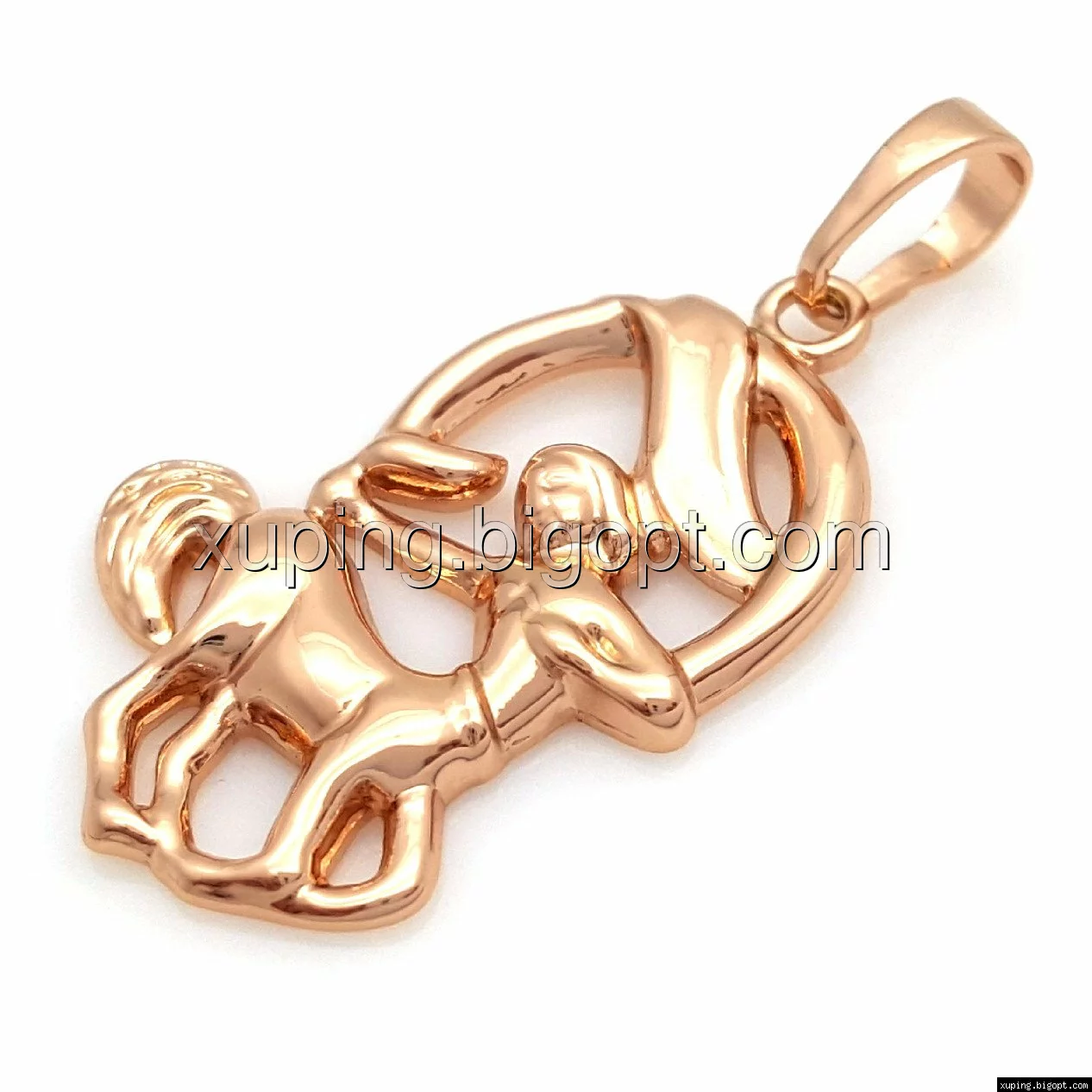 Кулон выполнен из медицинского сплава на основе латуни с добавлением легирующих элементов, с целью улучшения каких-либо его свойств, например коррозионной стойкости или прочности. Такой сплав не вызывает аллергии, не вступает в реакцию с потом человека, не меняет свои свойства под воздействием соленой воды и солнца. Поверхность изделия покрыта золотом 14 карата.