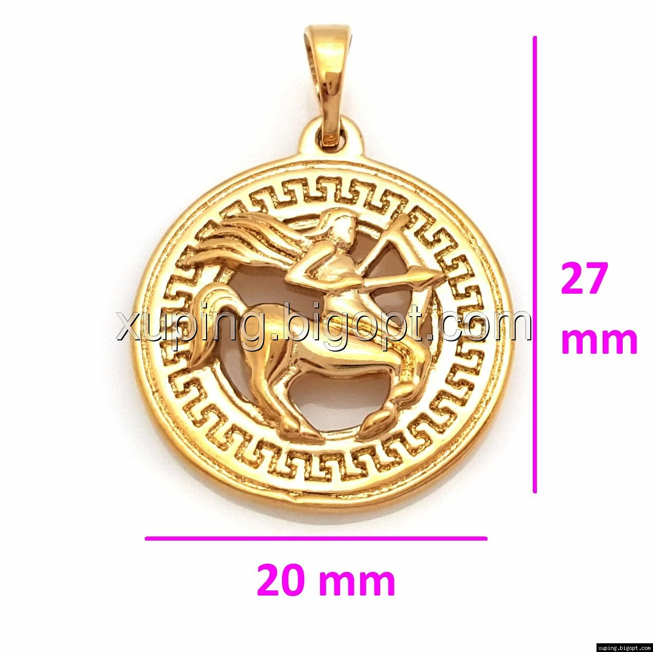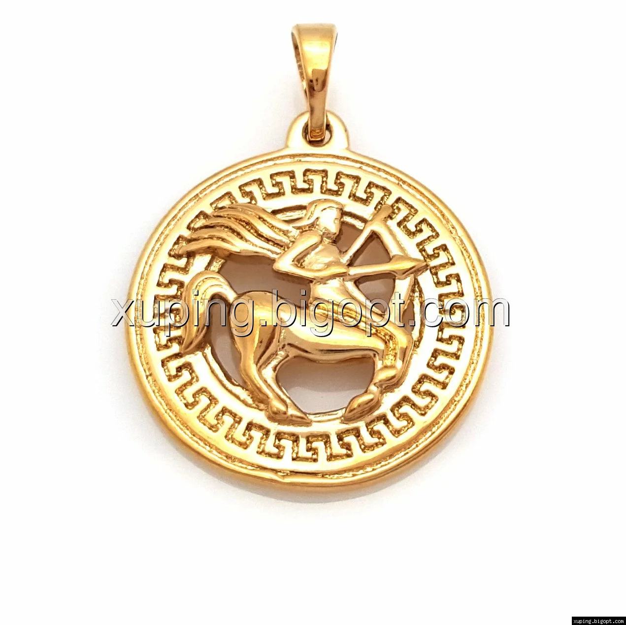 Кулон Знак Зодиака "Стрелец", с греческим узором, без камней, позолота