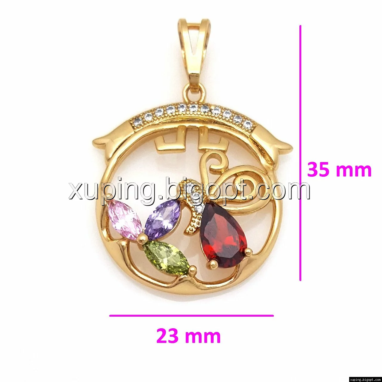Кулон Бабочка и Цветок, с разноцветным цирконием, позолота Xuping